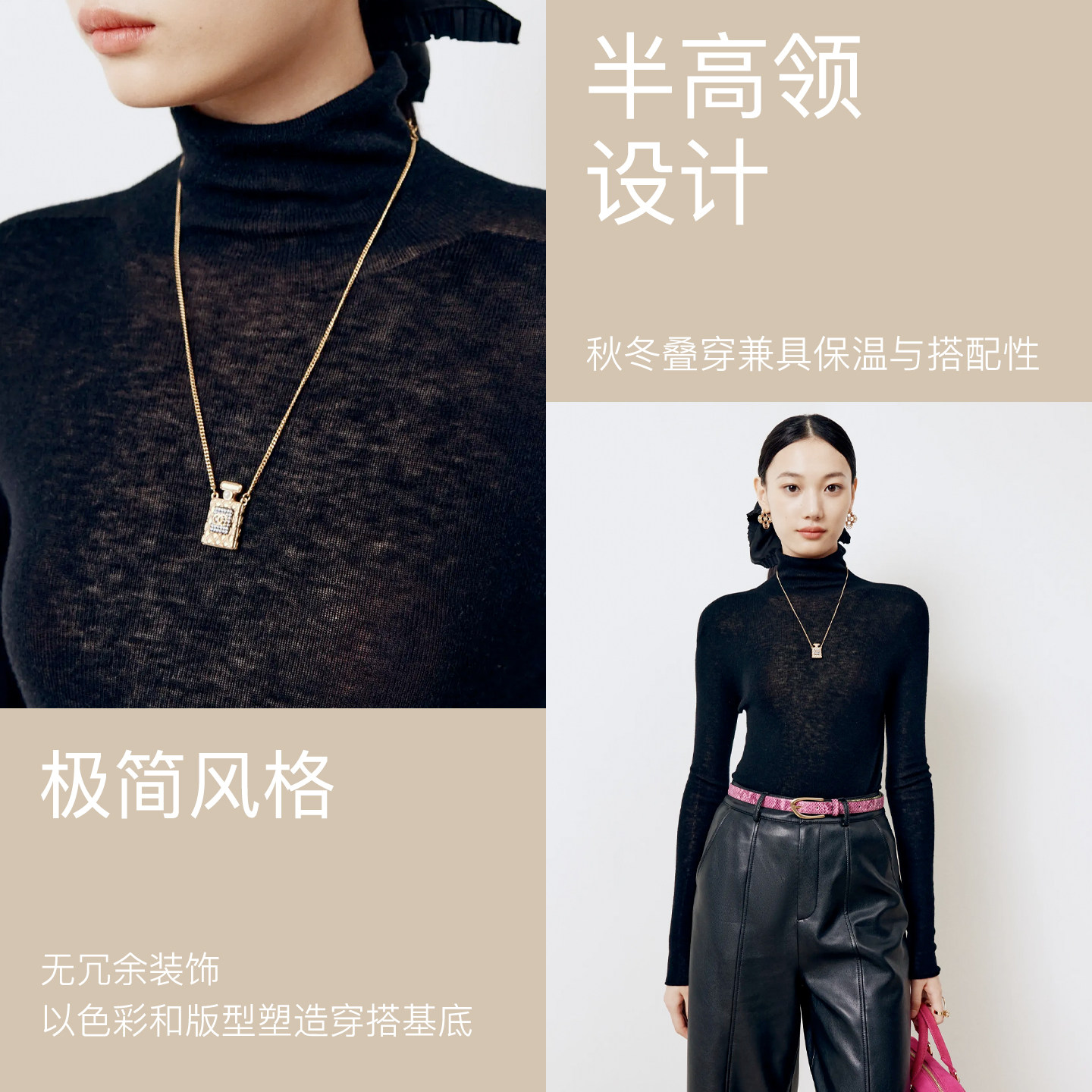 100%羊绒衫 慵懒高级感内搭可外穿黑白色高领毛衣 女秋冬羊毛打底衫
