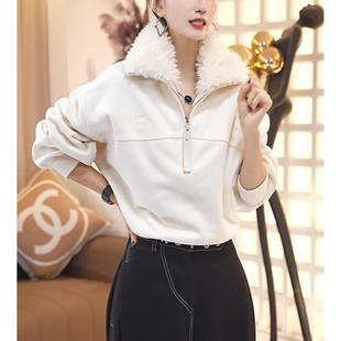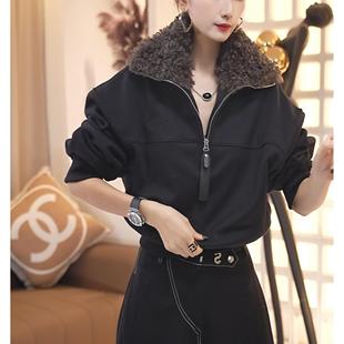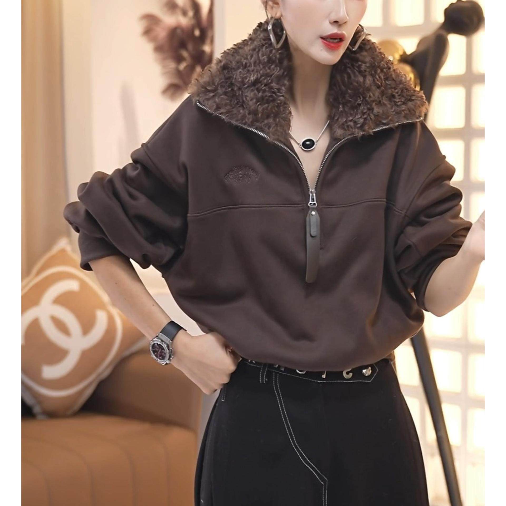 宽松遮肉显瘦加绒保暖 韩系时尚 已出货 毛毛领拼接拉链卫衣秋冬季