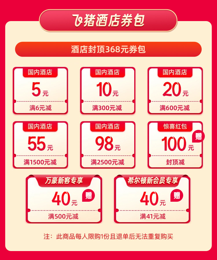 酒店大礼包 封顶368元 全国超10万家酒店适用 购 0.66元