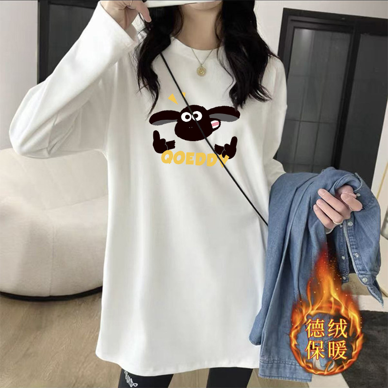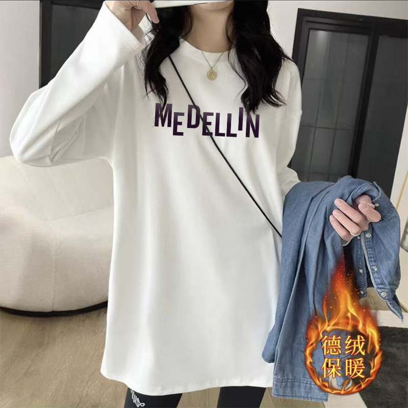 设计感减龄上衣 t恤小众宽松中长款 德绒保暖圆领打底衫 女秋冬长袖