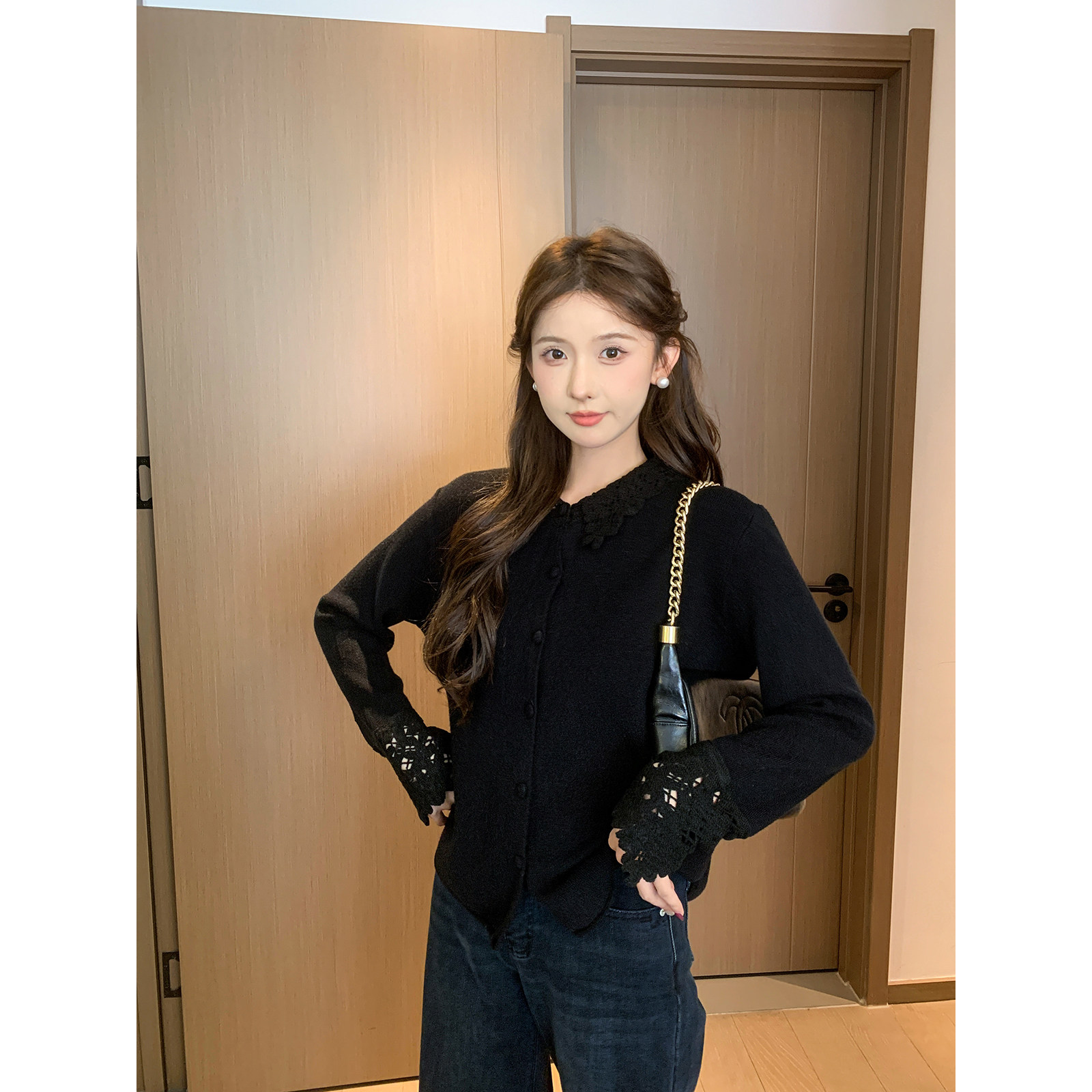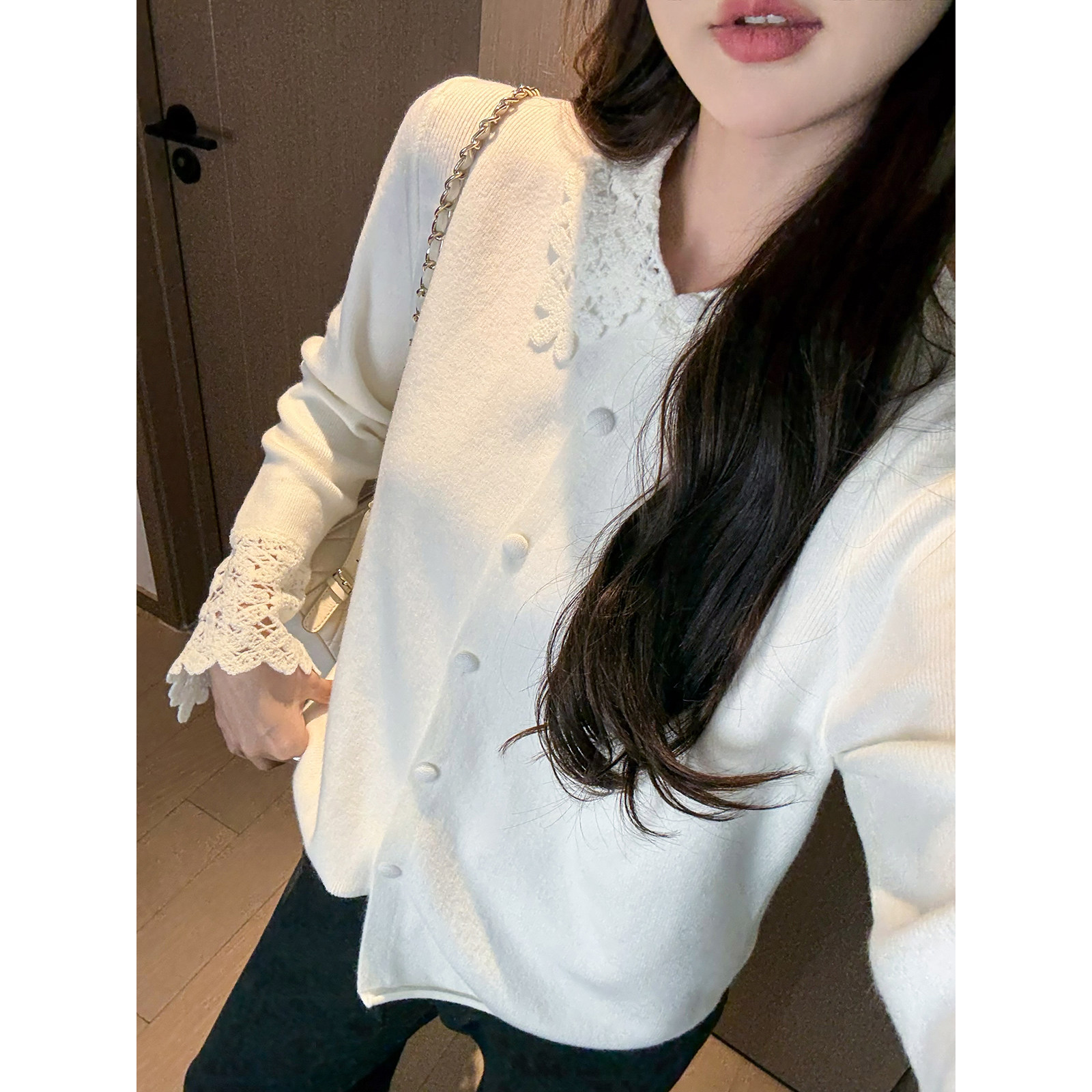 翻领安迪绒蕾丝拼接加绒针织开衫 法式 S725X21839 安朵 SHAOER