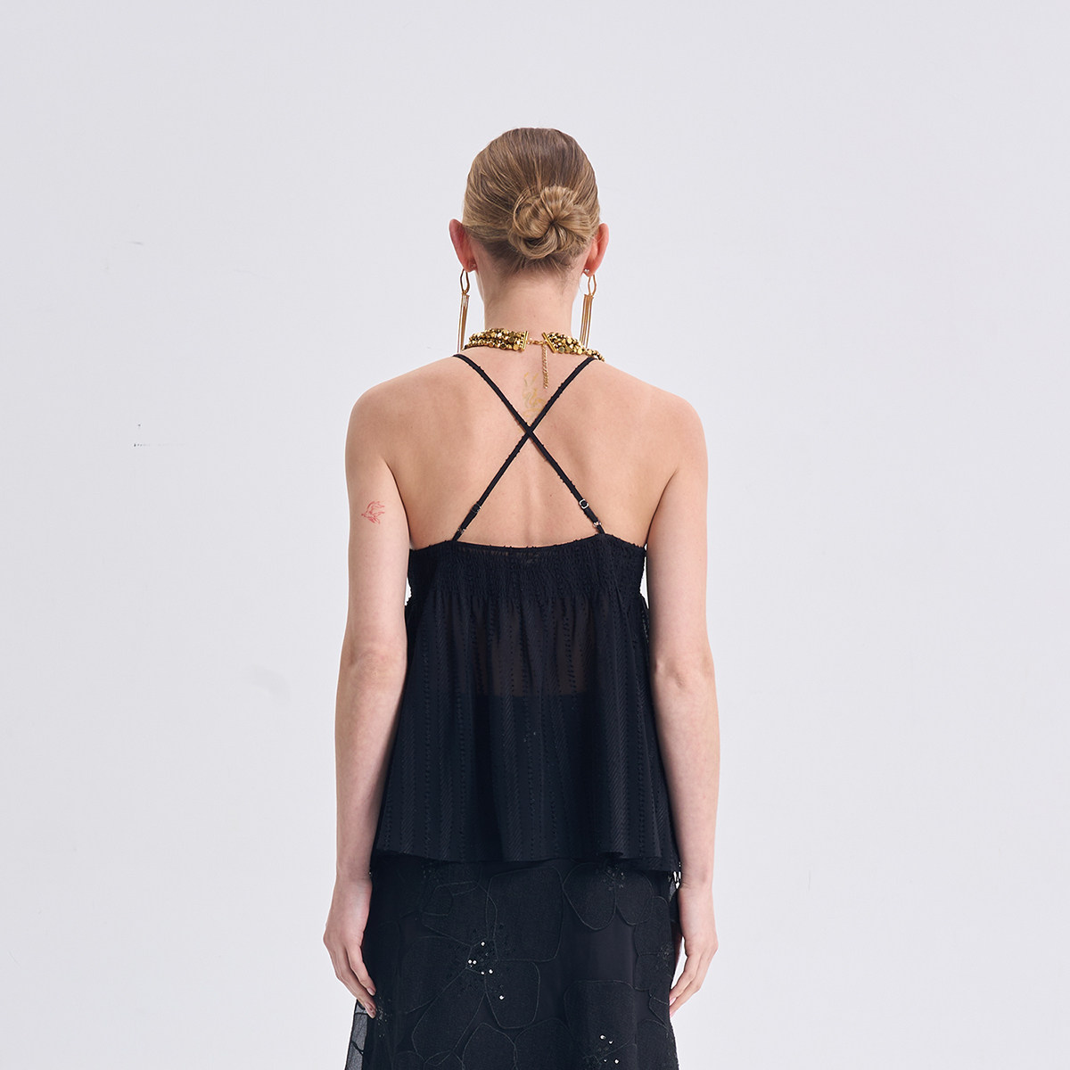 秋冬桑蚕丝绒感磨毛保暖打底衫 吊带带胸垫背心女士黑白色内搭上衣