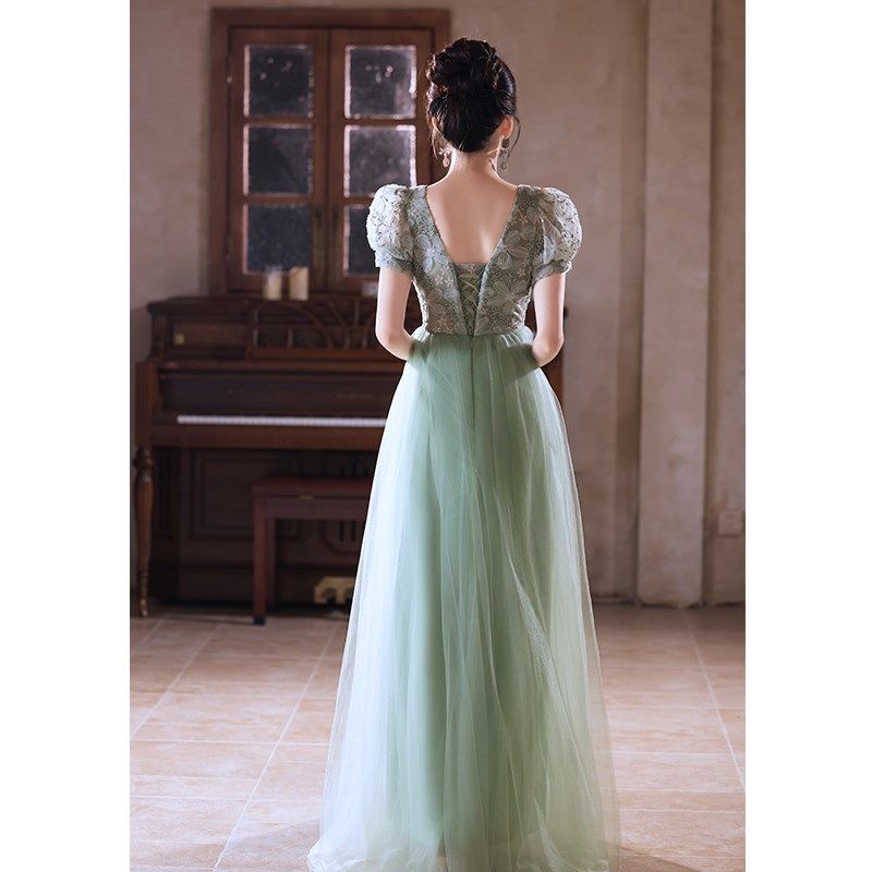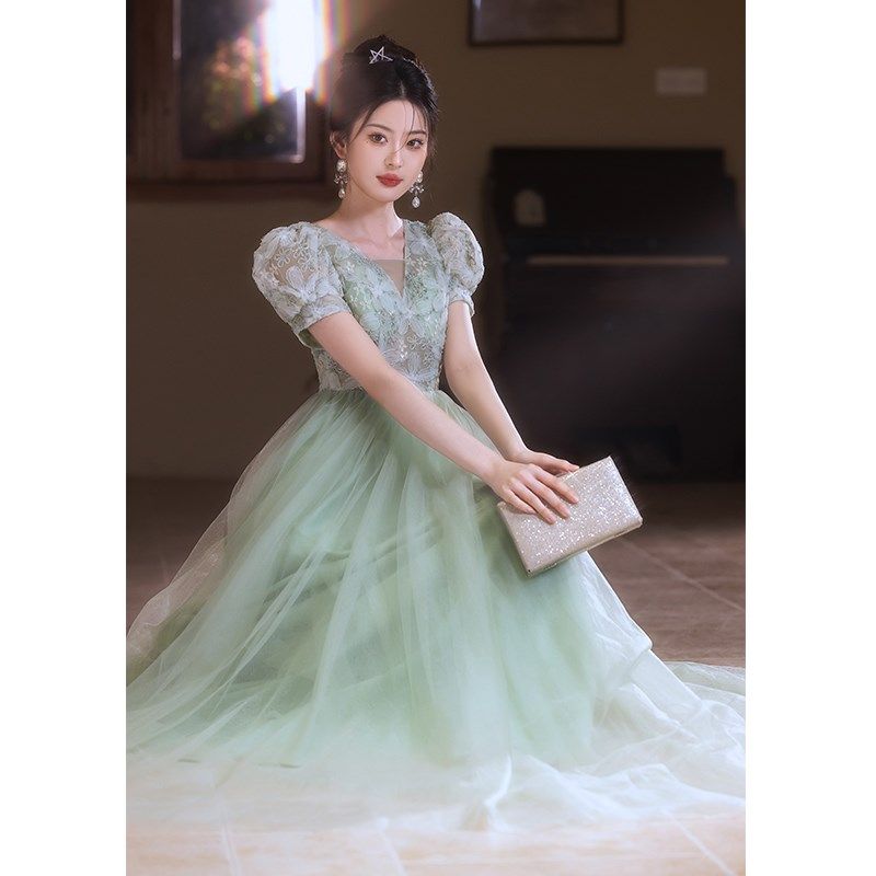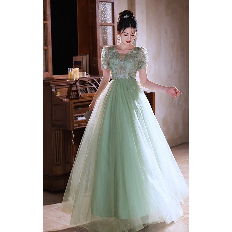高级感宴会晚装 一字肩纯色层层蛋糕连衣裙 礼服裙2024夏女方领短袖