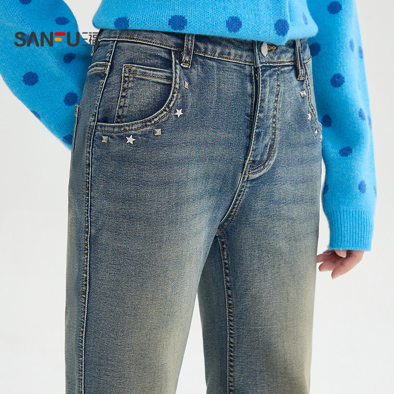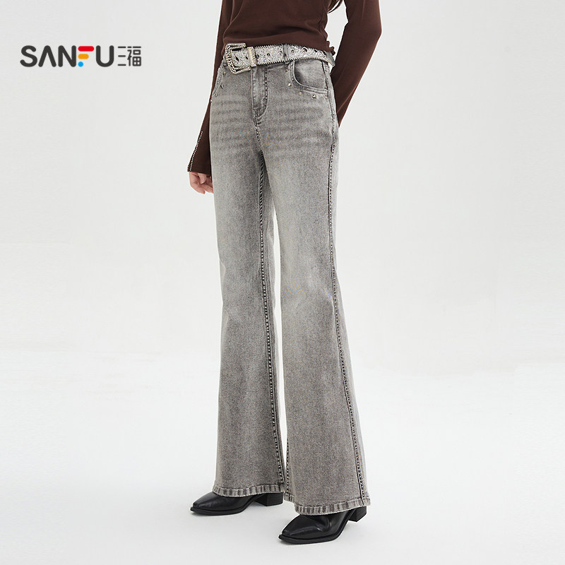 2026新款 子女装 春季 潮流长裤 515783 铆钉口袋喇叭裤 三福复古牛仔裤