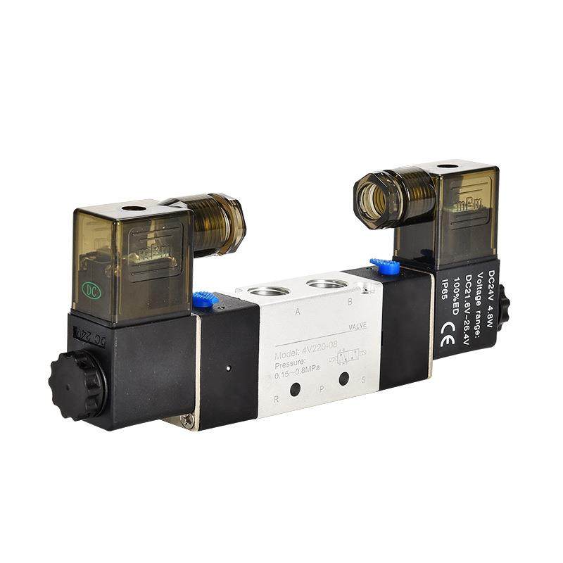 气动电磁阀4V210 08二位五通电子换向气阀24V气缸控制阀线圈220V