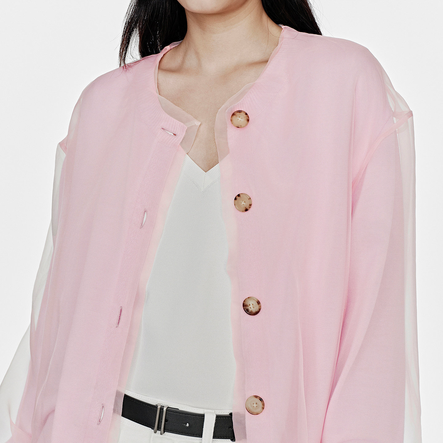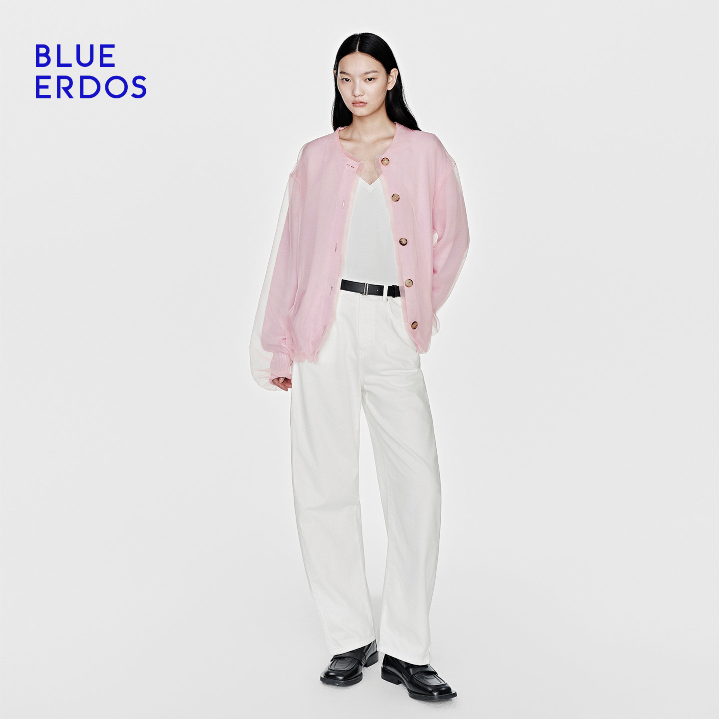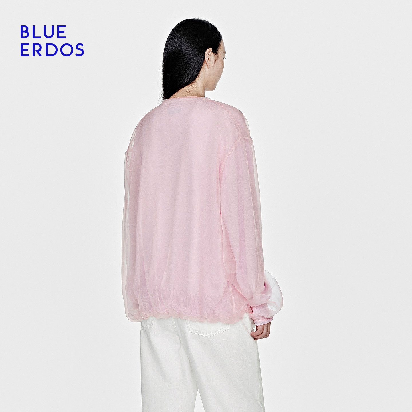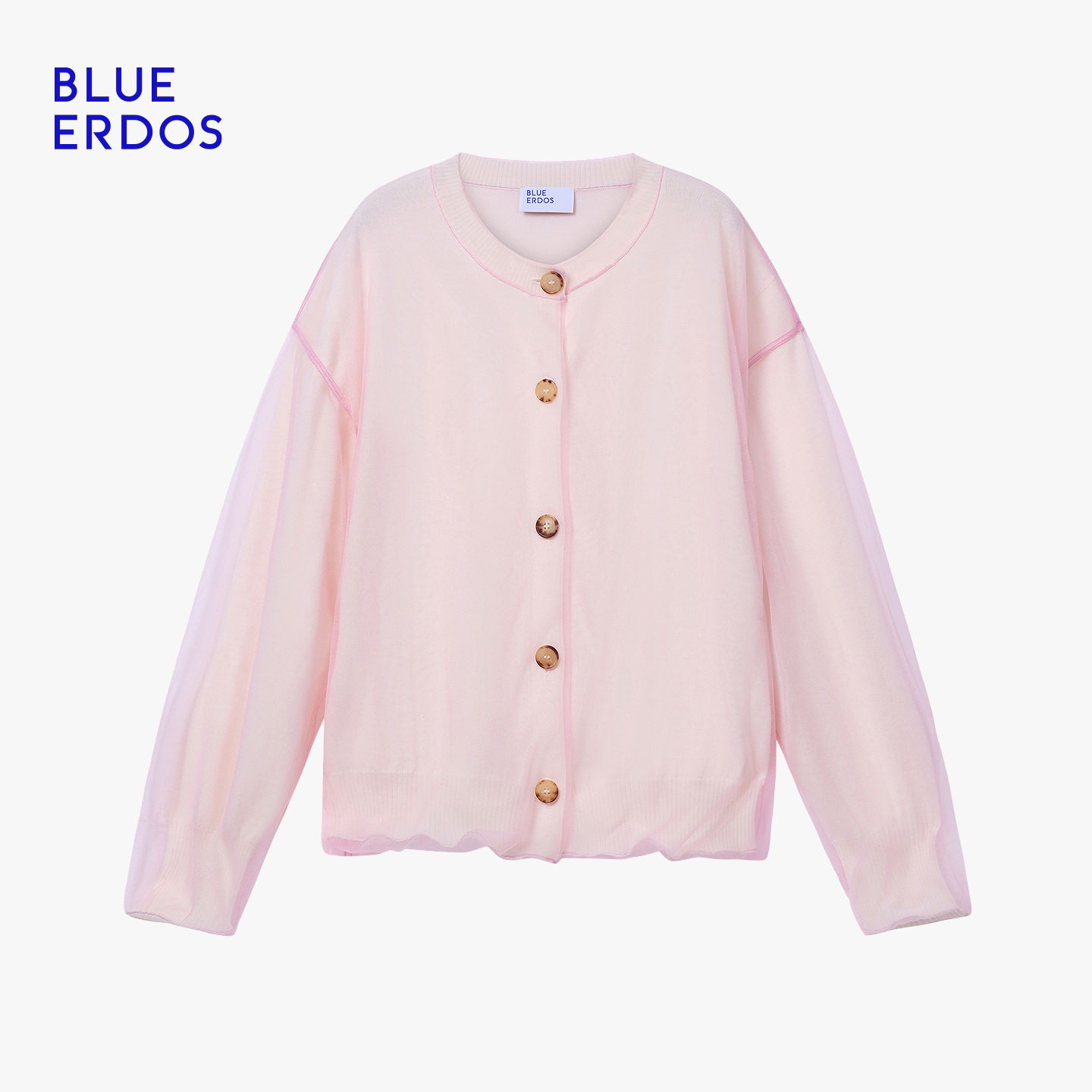 女B2265B028 设计感欧根纱拼接圆领针织开衫 BLUE ERDOS26早春新品