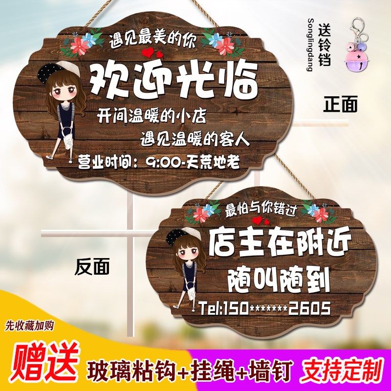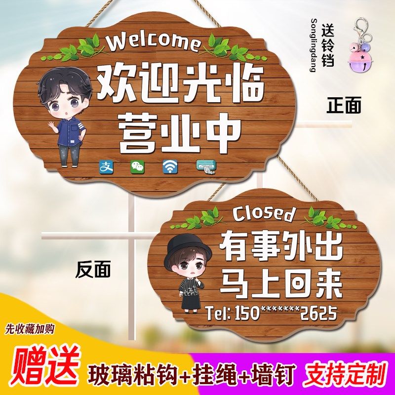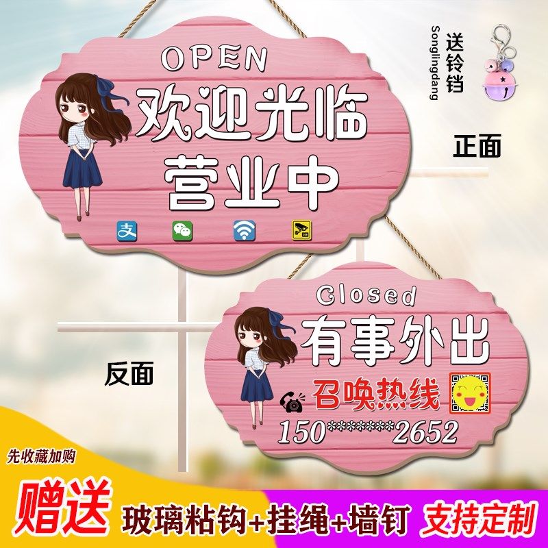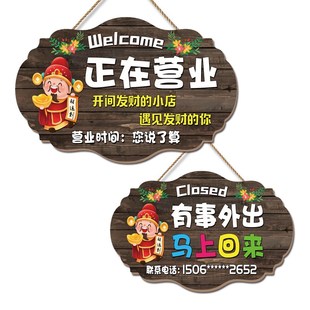 正在营业中挂牌欢迎光临双面定制休息中提示有事外出时间电话门牌