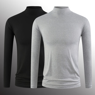 上衣潮流莫代尔中领体恤内衣 打底衫 莫代尔棉半高领长袖 T恤男修身
