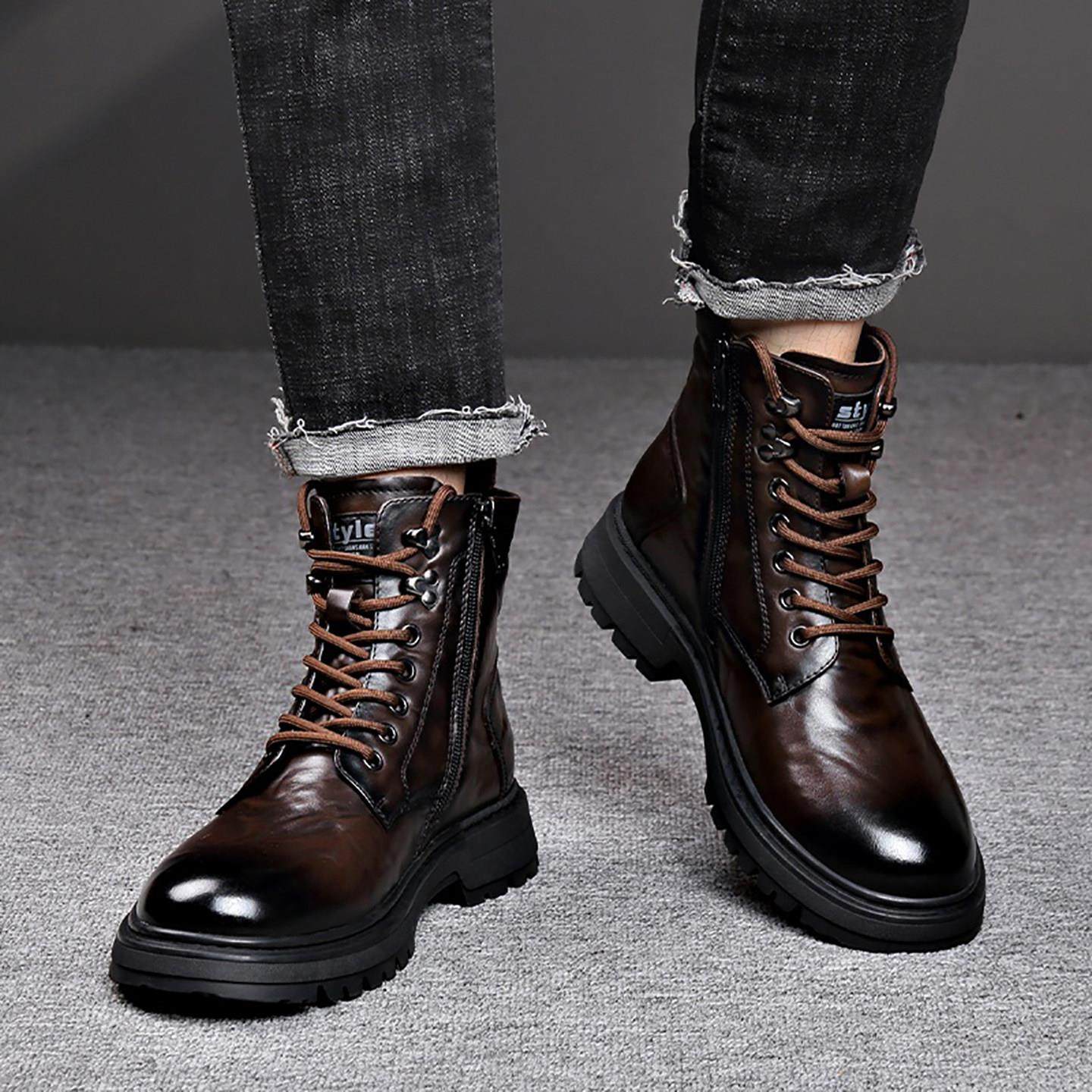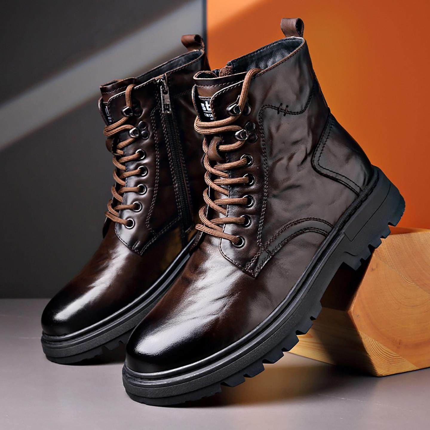 防水加厚短靴小码 真皮马丁靴女2025秋新款 厚底增高显瘦羊毛棉鞋