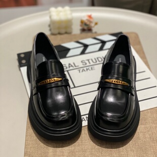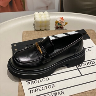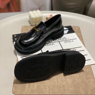 百搭舒适休闲鞋 黑色圆头小皮鞋 女2025新款 老钱风英伦风厚底乐福鞋