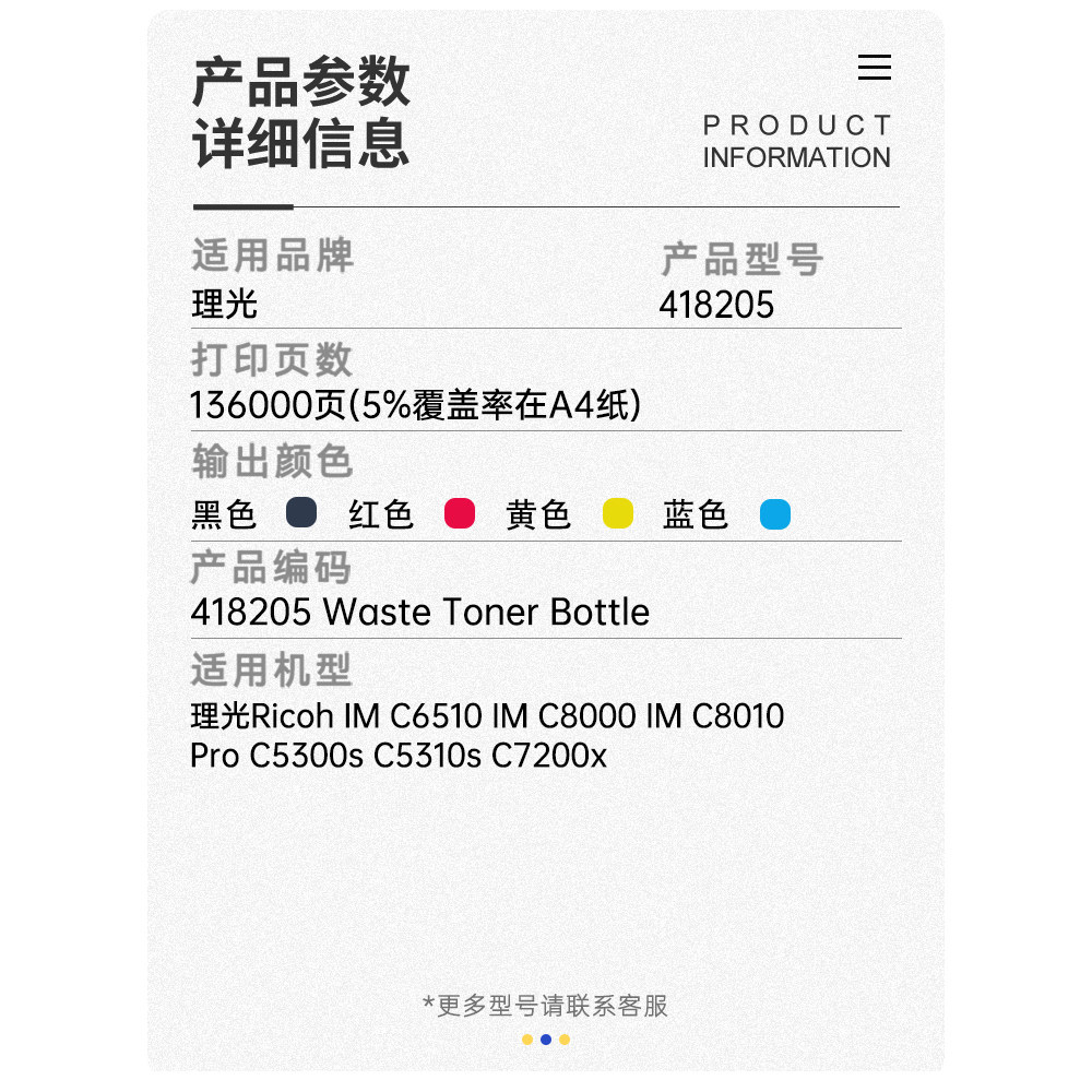C8010 适用理光418205废粉盒IM C8000 ProC5300s机型 C6510