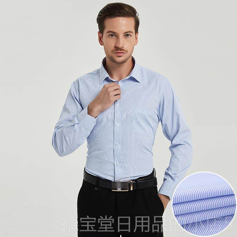 春长袖 寸衫 衬衫 蓝色纹男衬条衣大码 工作服打底 商男务职业工装 正品