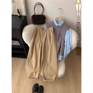 胖妹妹mm梨形身材显瘦九分休闲裤 直筒阔腿裤 大码 新款 女春季