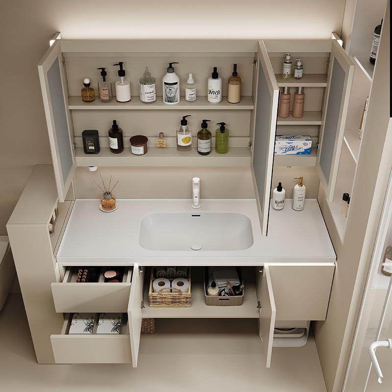 奶油风太空蜂窝铝浴室柜组合抽屉洗脸盆洗漱卫生间洗手盆陶瓷一体