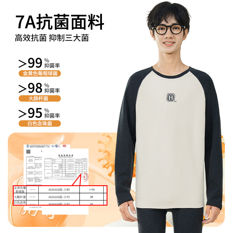 秋冬 学生保暖内衣线衣男大童打底衫 青少年抗菌秋衣秋裤 套装