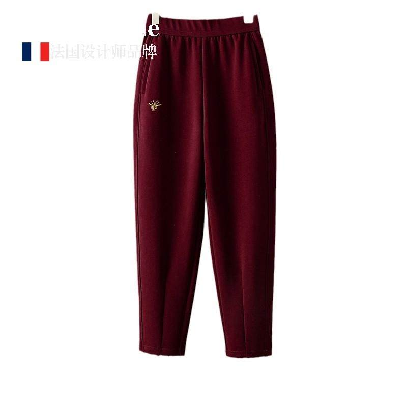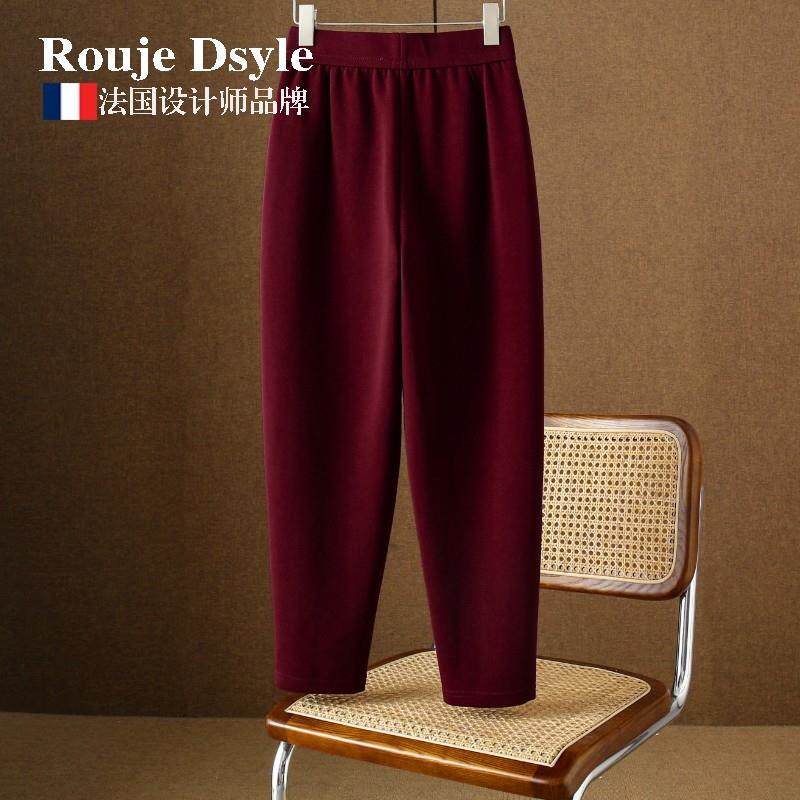 小个子休闲裤 法国Rouje 大码 女高腰中年妈妈裤 Dsyle酒红色哈伦裤