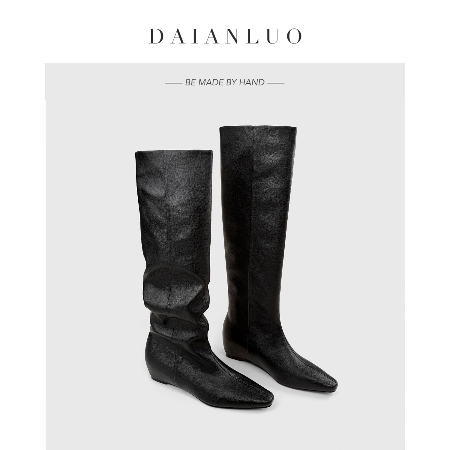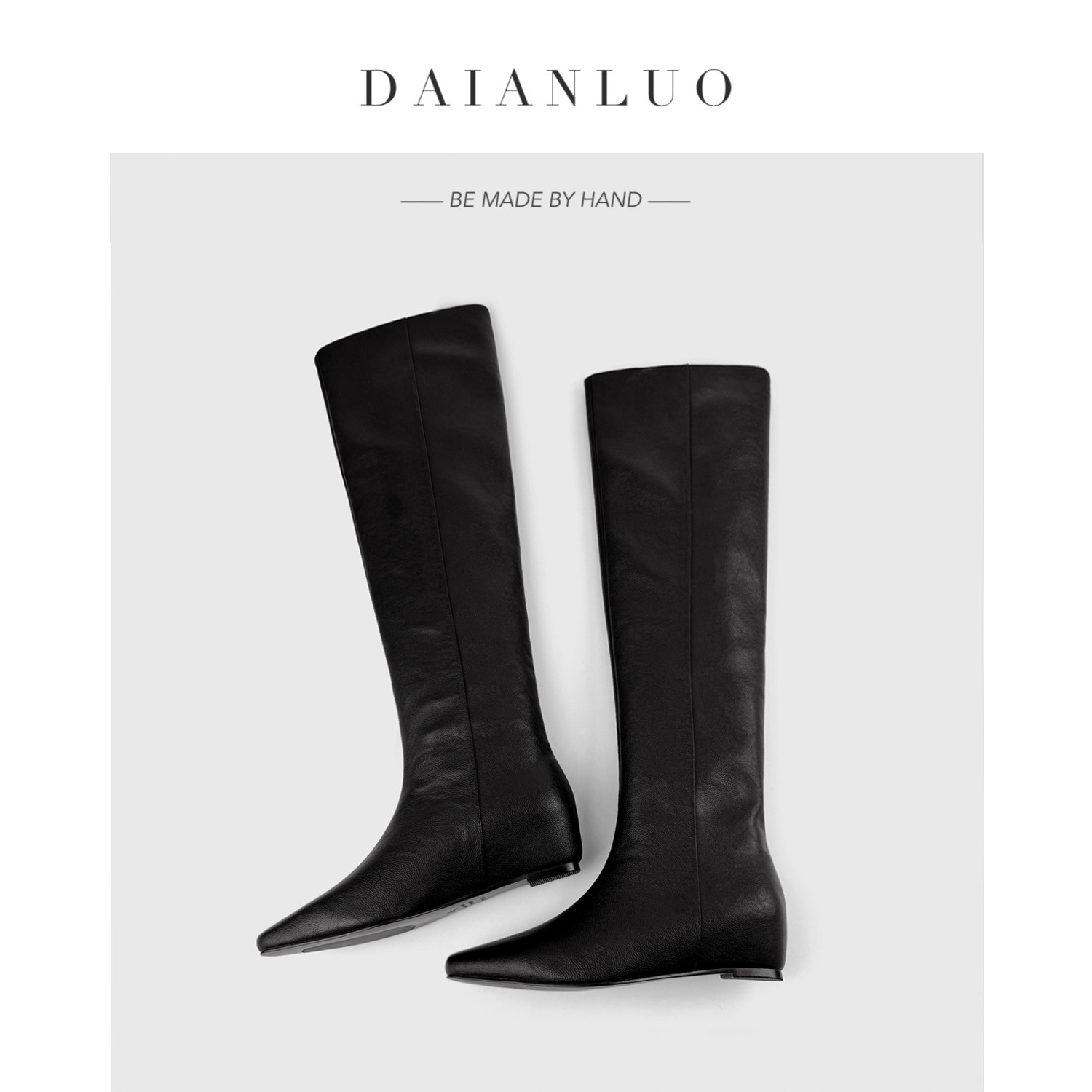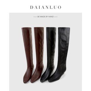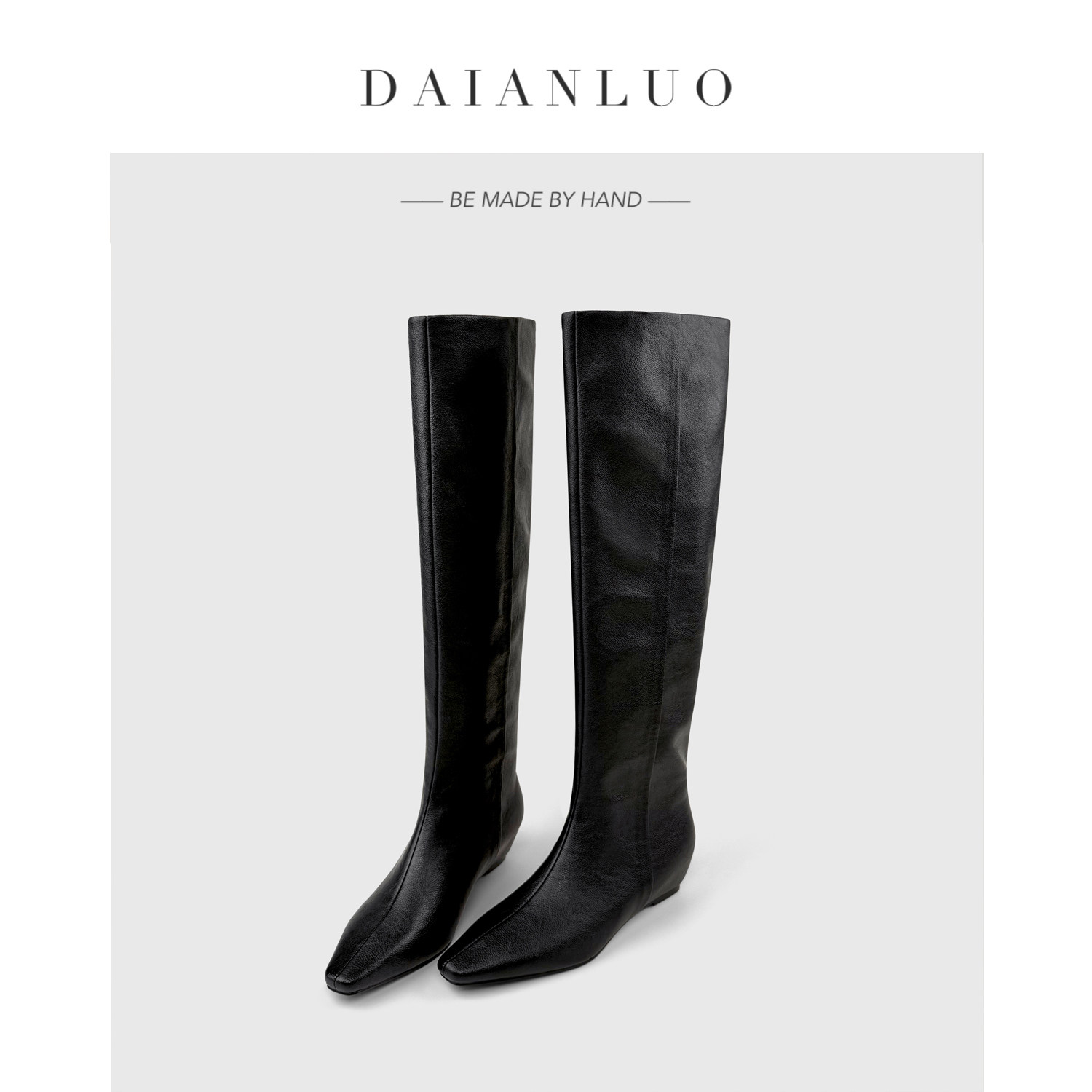 内增高及膝靴过膝长靴女骑士靴百搭平底直筒靴 新款 内增高5cm