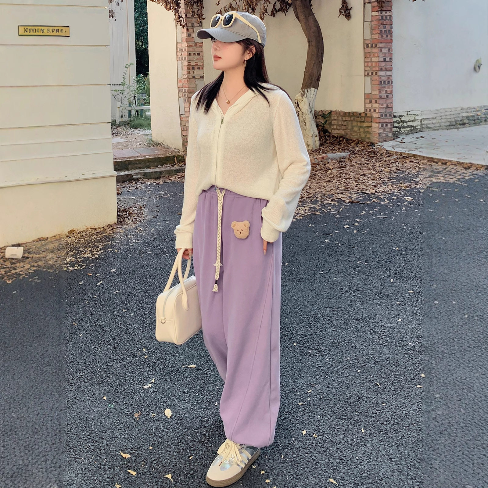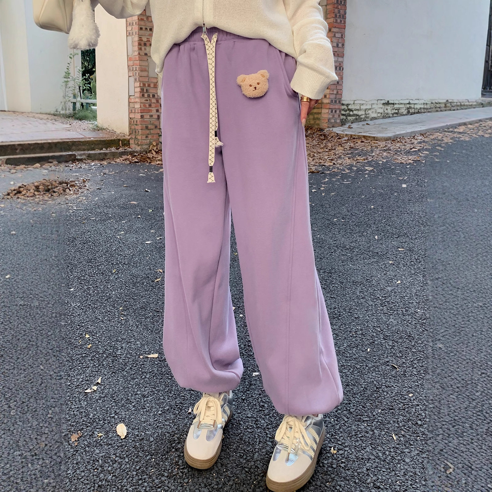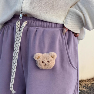 子女装 猫咪加绒加厚休闲卫裤 秋冬季 新款 大码 亚文化阔腿运动裤 美式