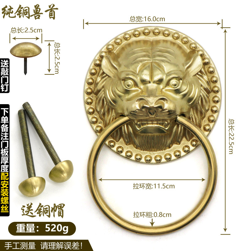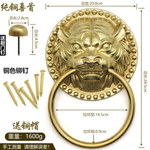 仿古纯铜兽头门环中式 狮子头虎头拉手狮子头大门把手复古木门拉环