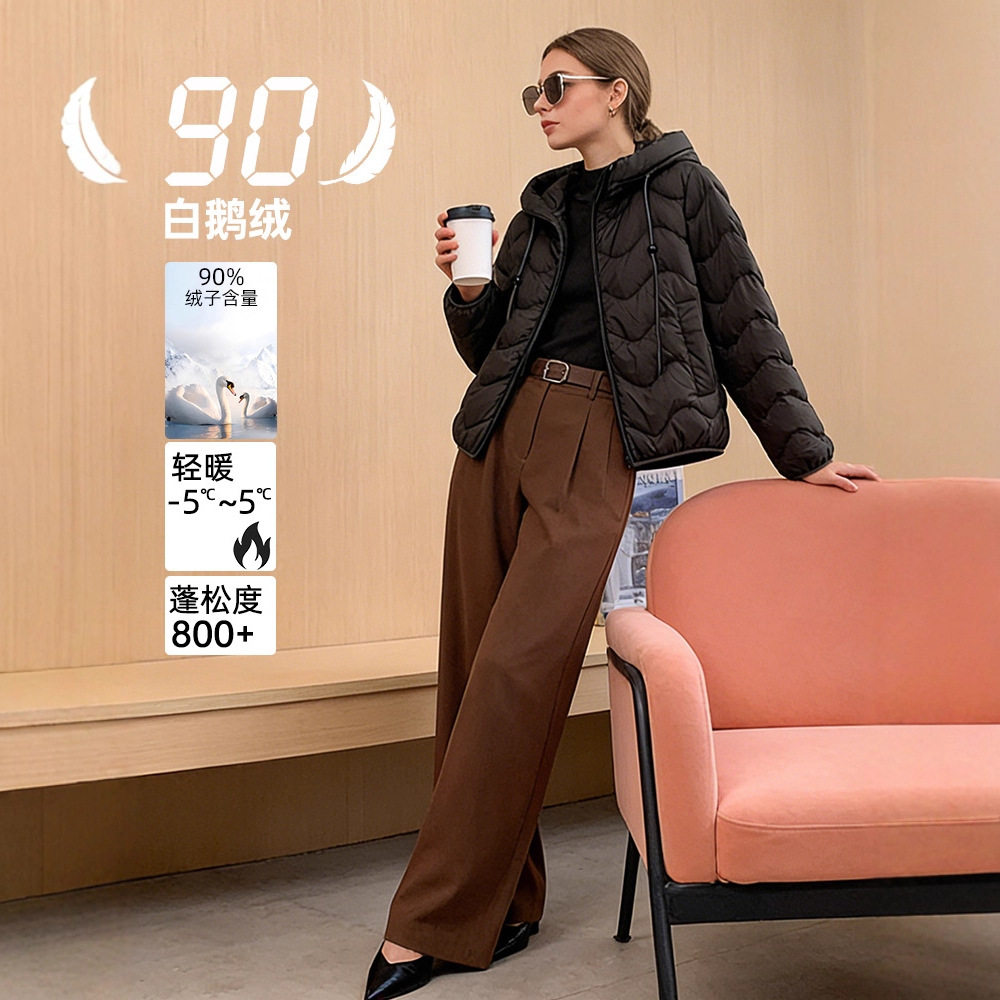 女上衣 羽绒服小个子轻薄外套百搭羽绒服内胆咖色短款 新款 女排骨款