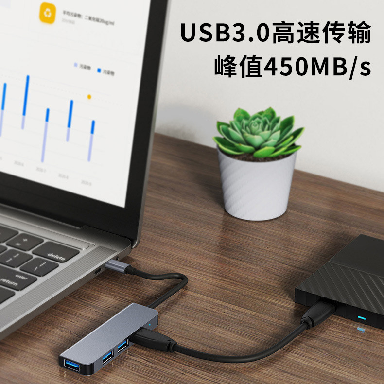 USB3.0集线器多接口扩展坞台式 机主机笔记本电脑手机平板通用拓展连接键盘鼠标U盘分线typec延长线转接头HUB