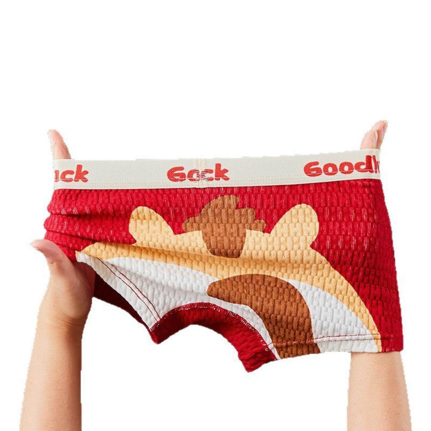 四角短裤 雅鹿本命年内裤 纯棉大红色礼物属马年结婚大码 平角裤 男士