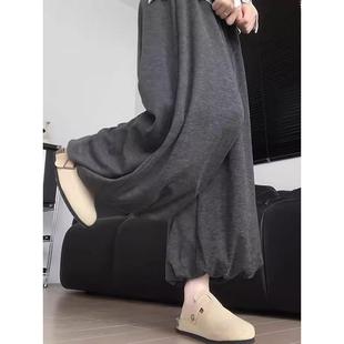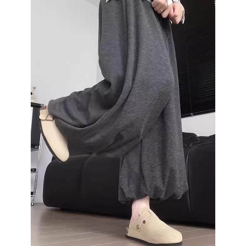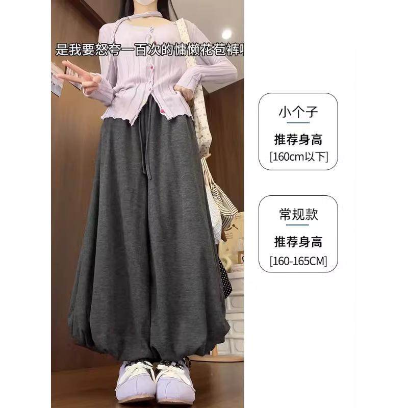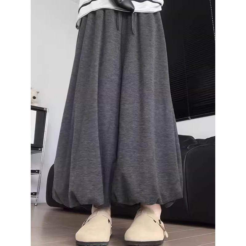 小个子慵懒显瘦灯笼裙裤 深灰色花苞糯米裤 女秋冬加绒保暖阔腿棉裤