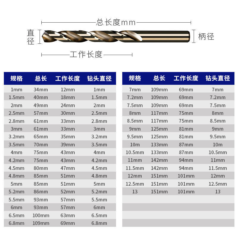 麻花钻头钢铁打孔不锈钢专用304超硬高速钢含钴直柄多功能转头3.2