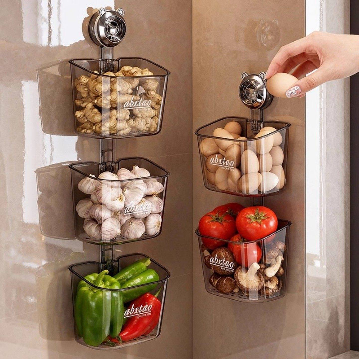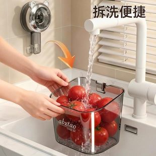 厨房吸盘置物架免打孔葱姜蒜收纳盒子2025新款 挂旋转收纳神器 壁式