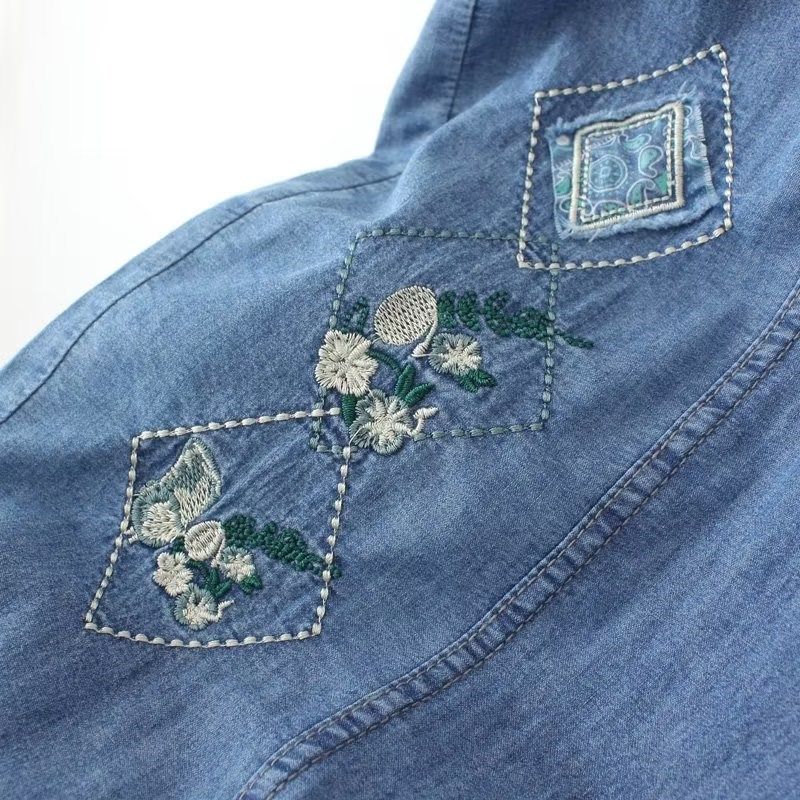 宽松老爹裤 中老年妈妈刺绣高腰盘扣八分休闲裤 夏装 牛仔裤 薄款 大码