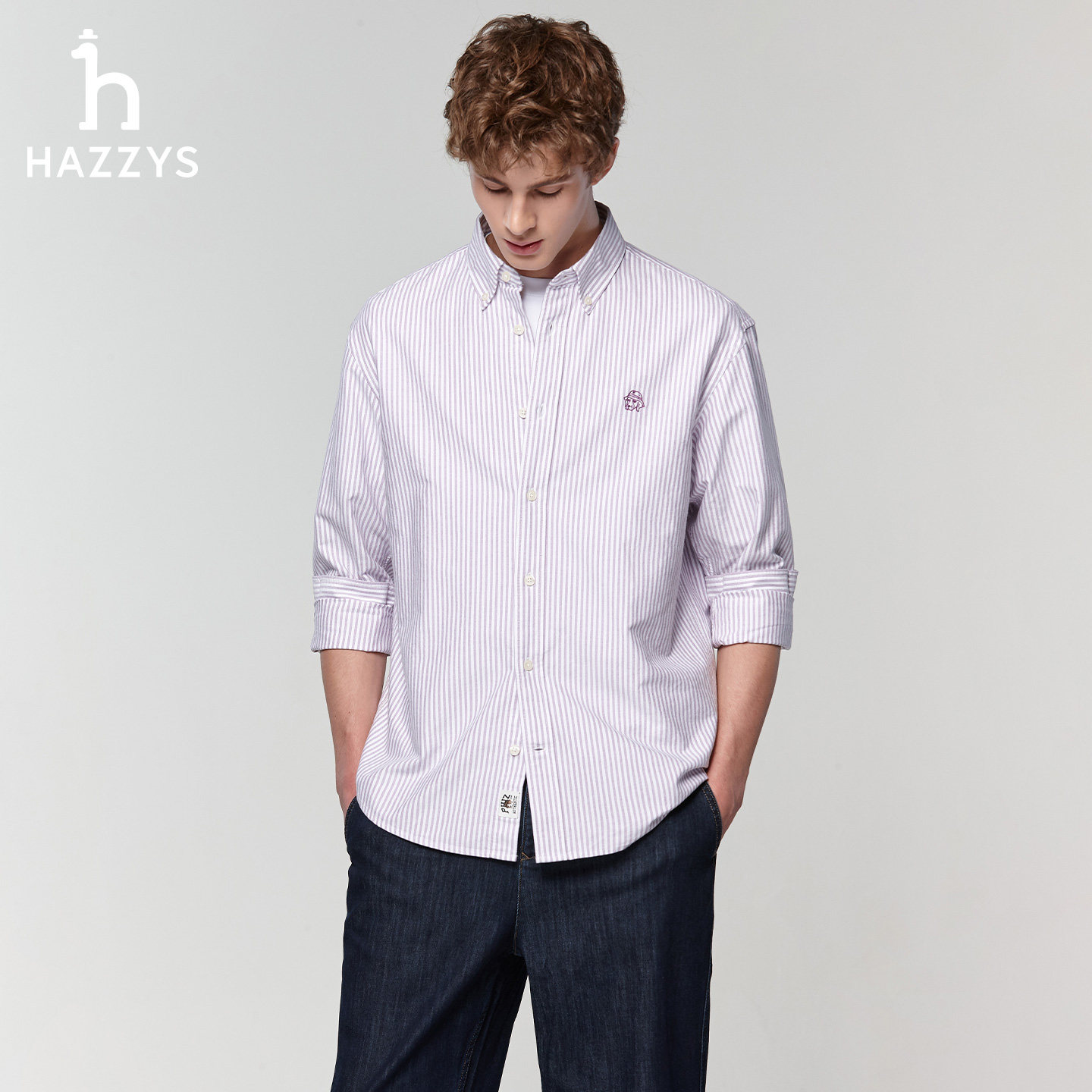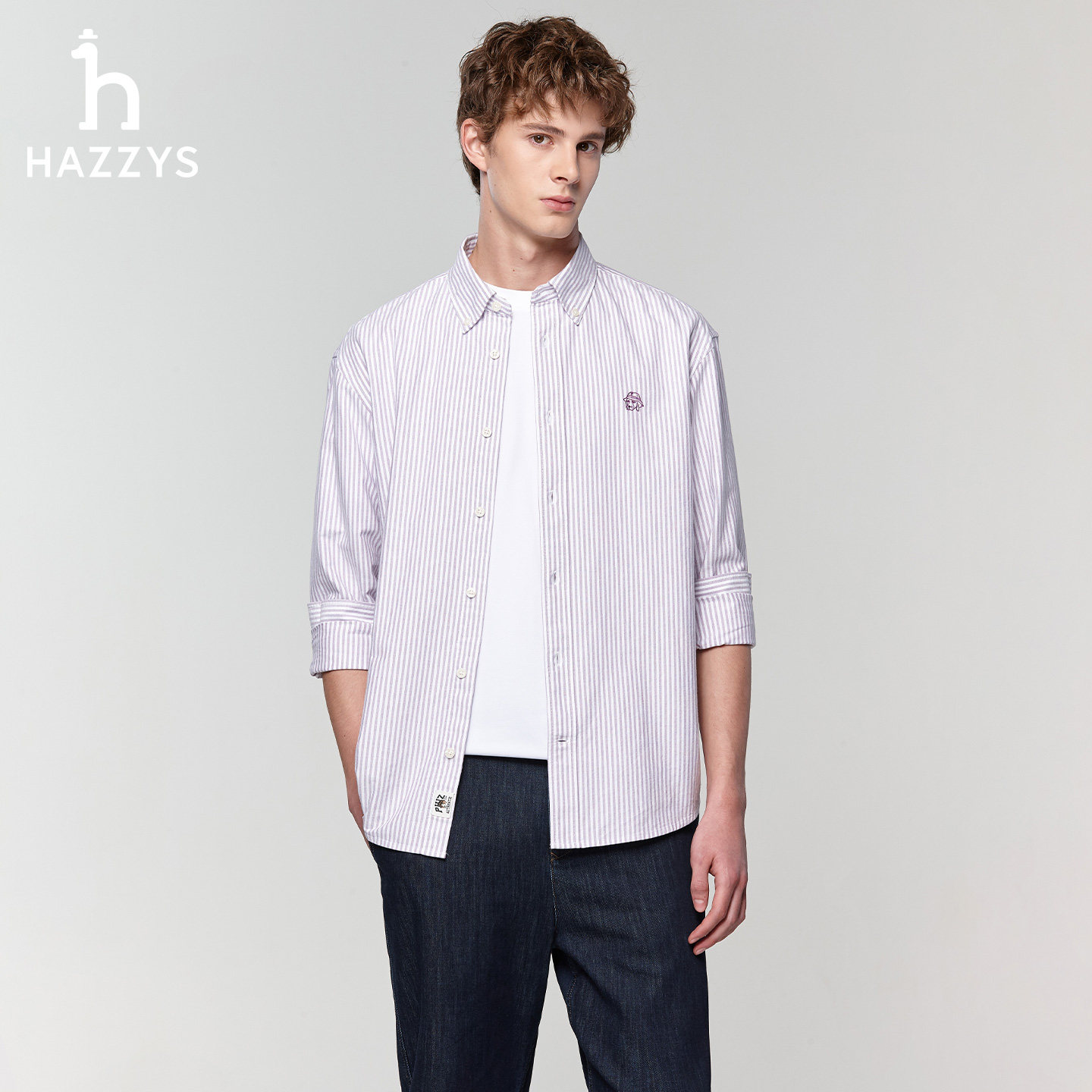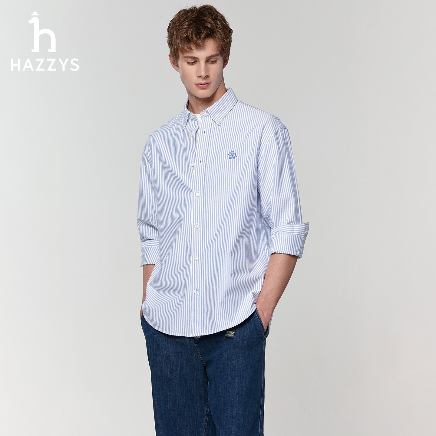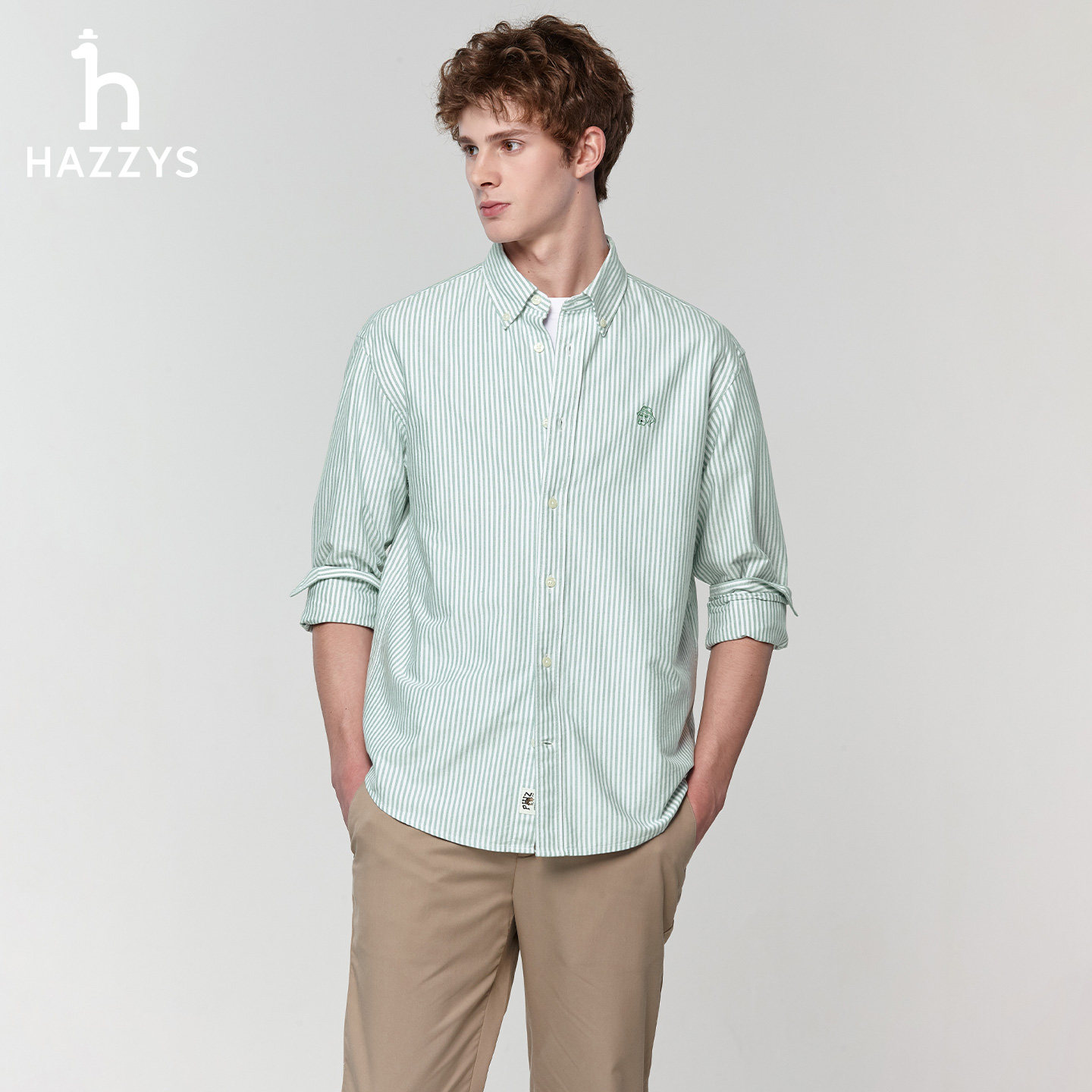 男士 新款 纯棉长袖 潮条纹通勤衬衫 Hazzys哈吉斯奥莱男装 男上装 春季