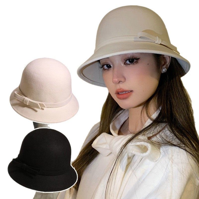 2025秋冬季 毛呢毡帽女士英伦复古风盆帽户外出行优雅条形礼帽 新款