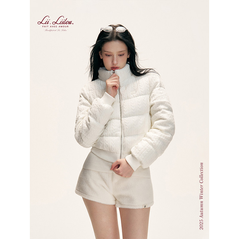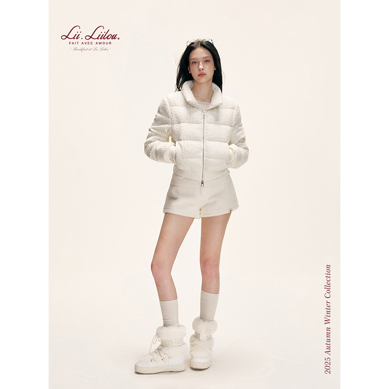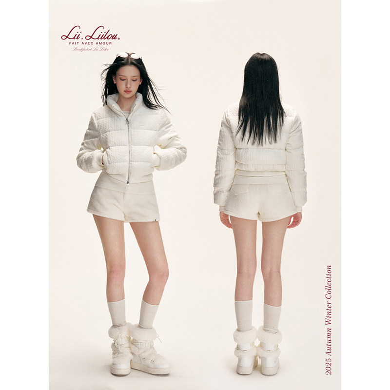 环保水貂毛软糯加厚A字高腰直筒宽松短裤 Liilou Snowcore