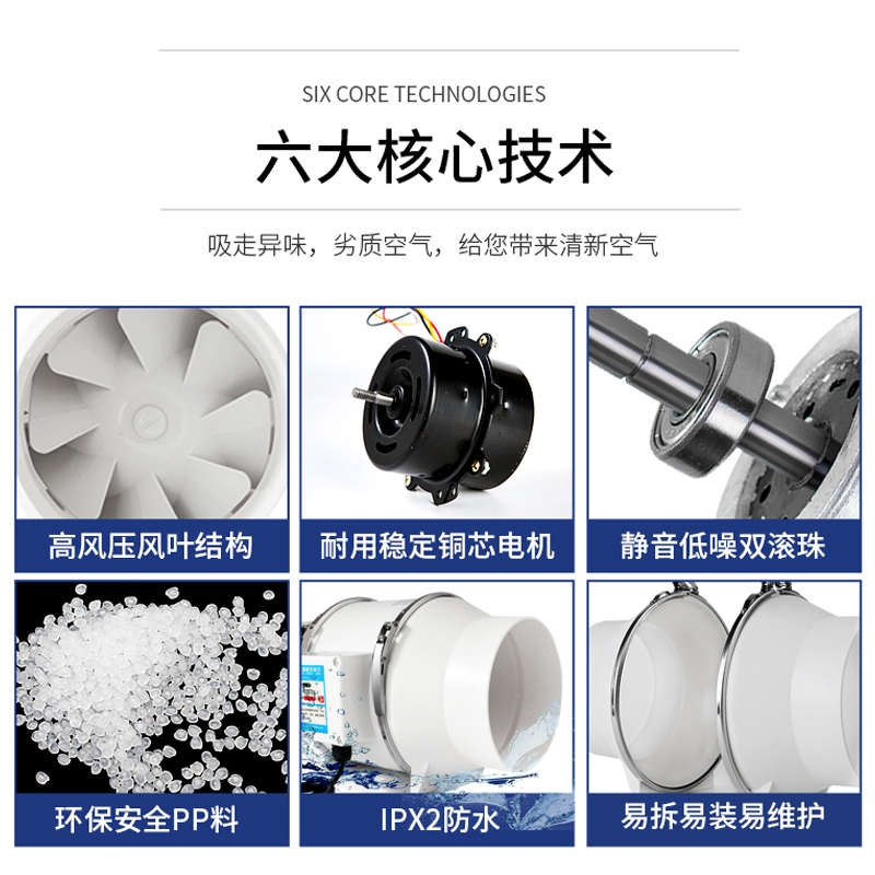 泓钧增压管道风机排气扇厨房排风扇卫生间换气扇家用排油烟大吸力