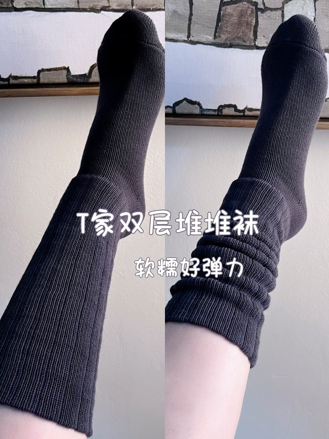 韩系中筒袜子女士纯色休闲长腰竖条纹堆堆吸汗防臭春秋款 美腿月子
