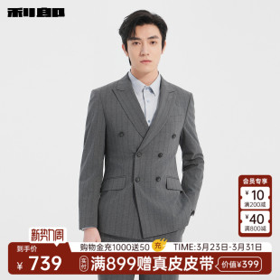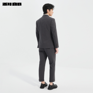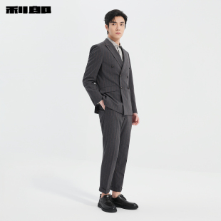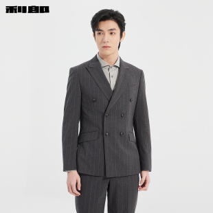 双排扣西装 休闲男装 套装 新款 商务条纹西服两件套 男春季 利郎官方
