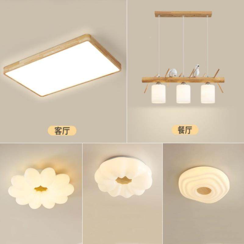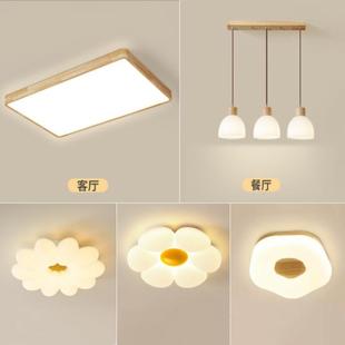 客厅灯简AGA约现代主大气家原用大灯木奶厅油风吸顶灯具组合全屋