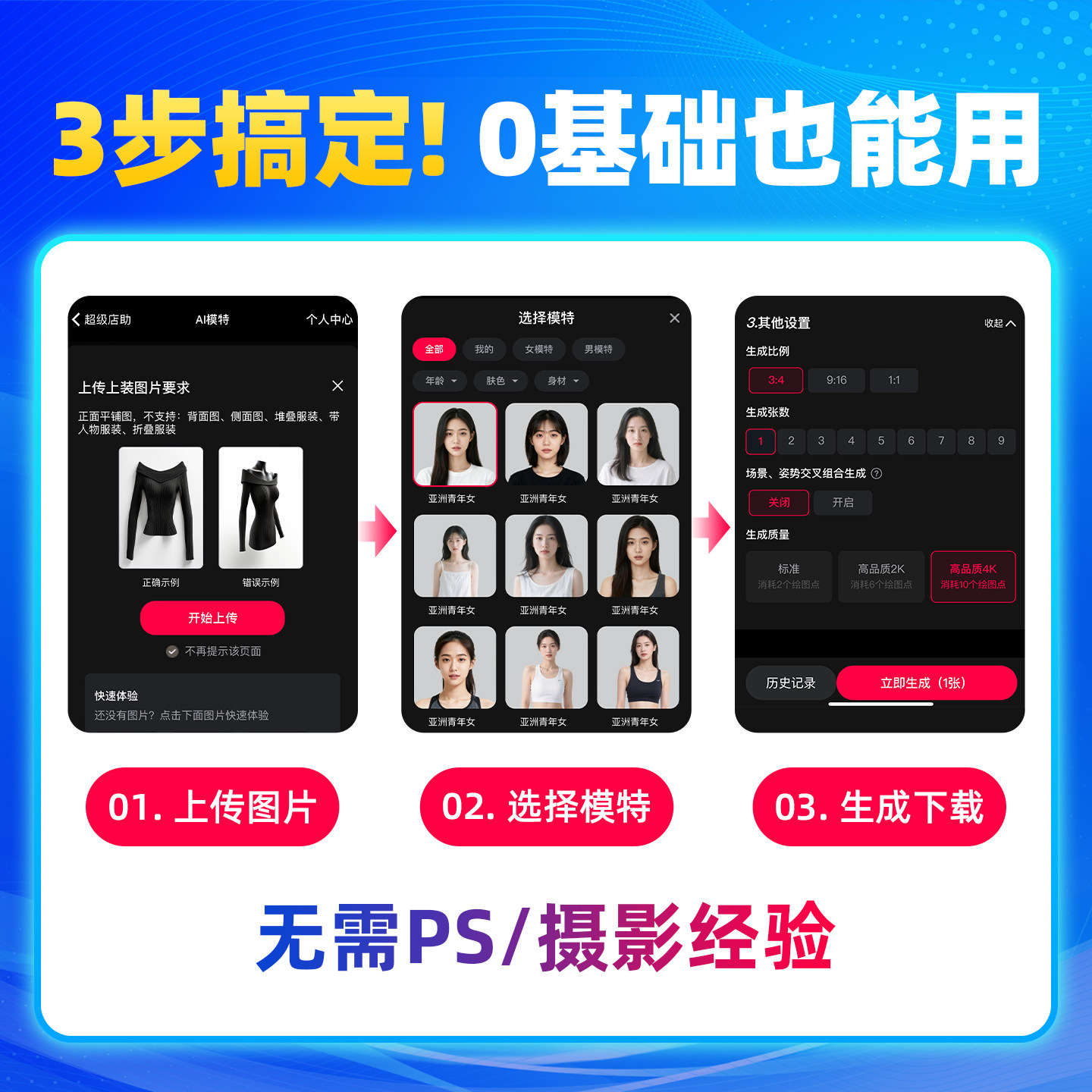 女装 子自动上身穿版 男装 模特衣服裤 图软件 童装 秦丝AI模特一键换装