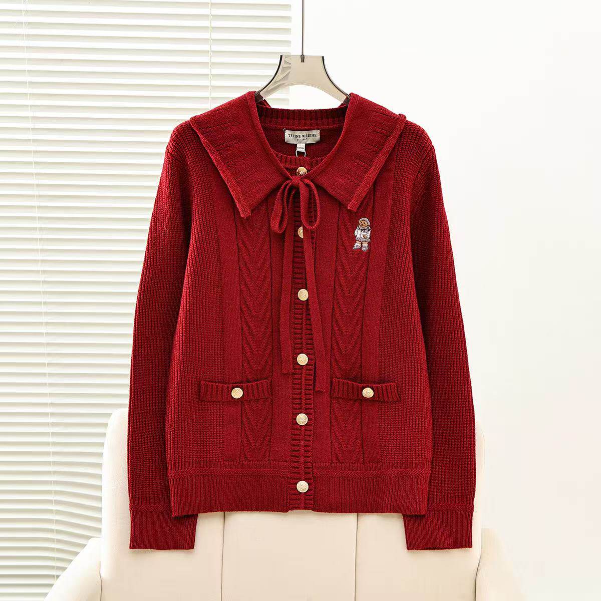 TTCK254CC1A 学院少女感可拆卸翻领针织毛衣开衫 2025秋冬新款 女装