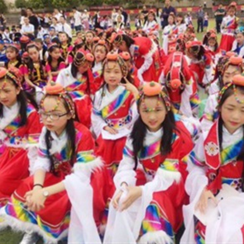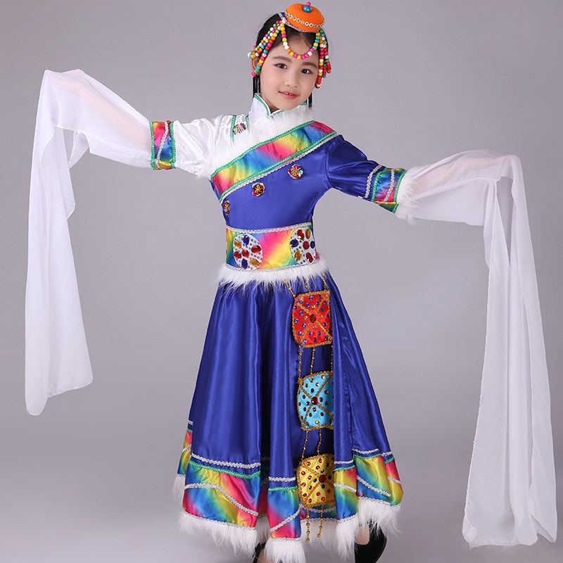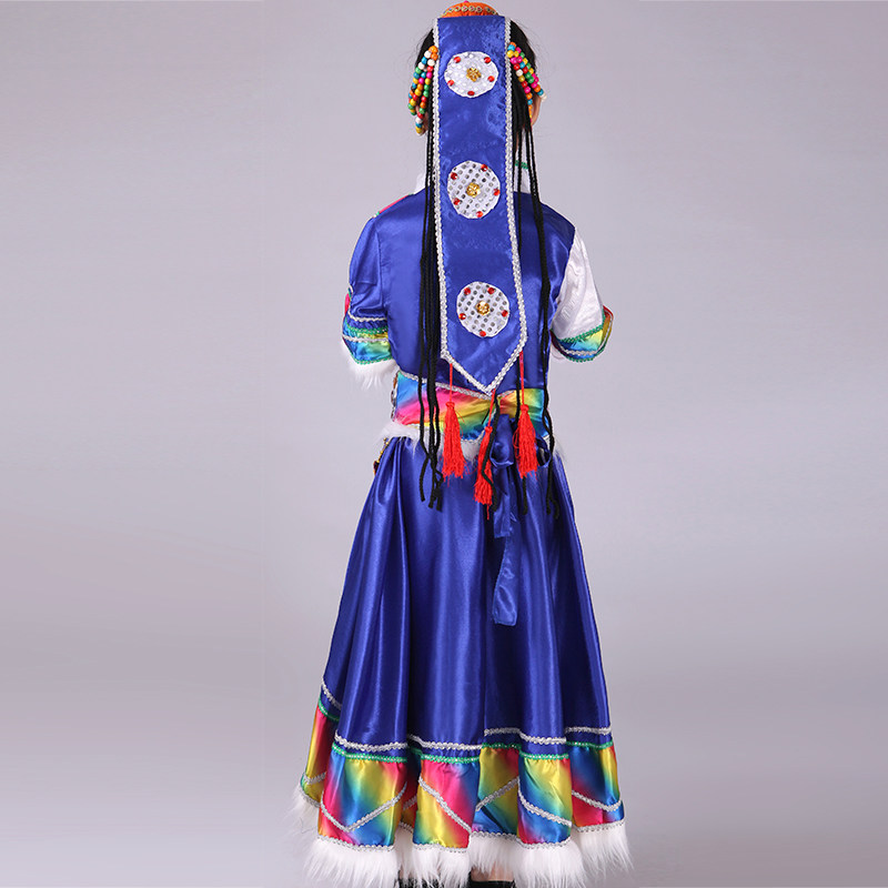 儿童藏族舞蹈服舞台表演服女舞蹈演出服装 少数民族长裙大摆裙水袖
