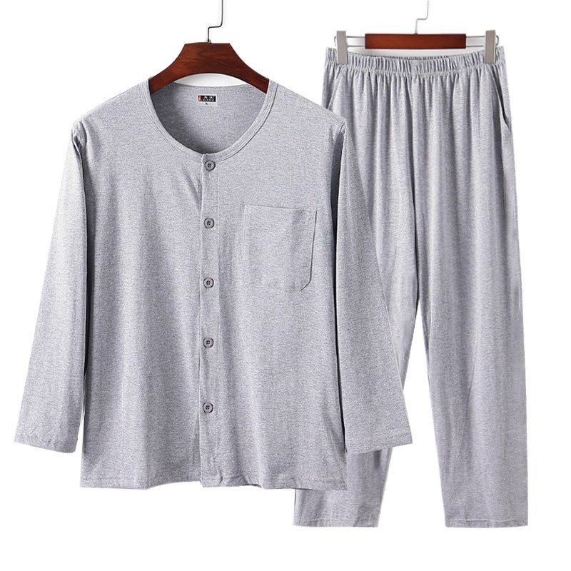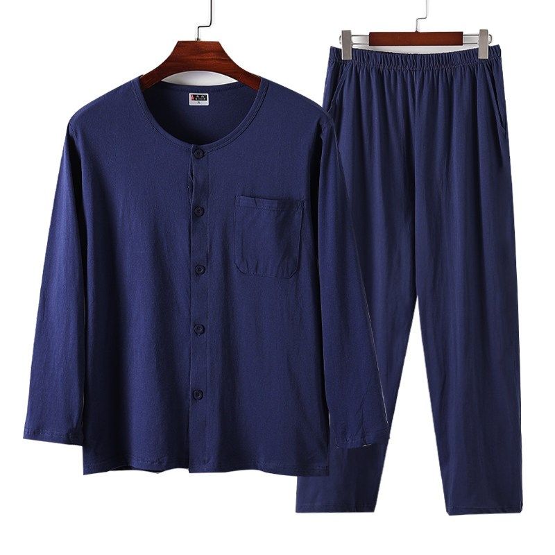 开衫 宽松加大码 睡衣中老年人纯棉长袖 薄款 上衣 家居服春秋夏季 男士