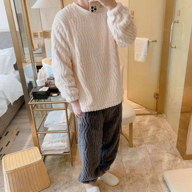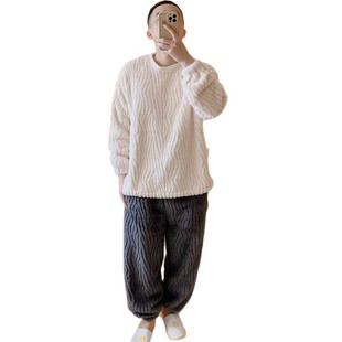 加绒加厚青少年加大码 法兰绒韩版 家居服 睡衣秋冬季 严选珊瑚绒男士