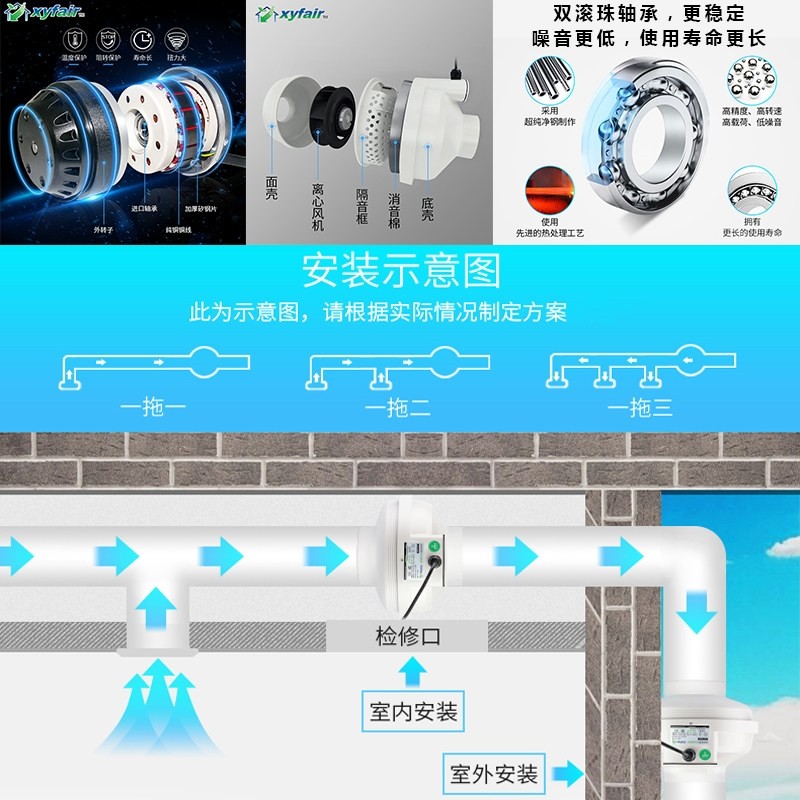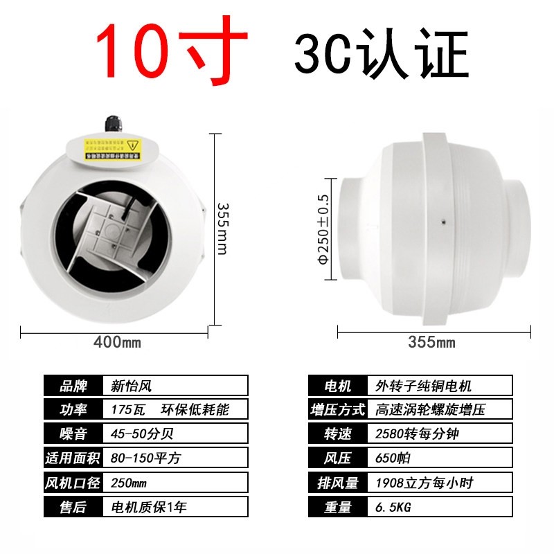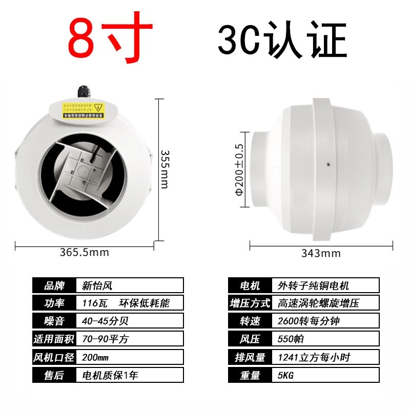 强力静音管道风机厨房油烟涡轮抽换气扇风机商用家用排气扇卫生间