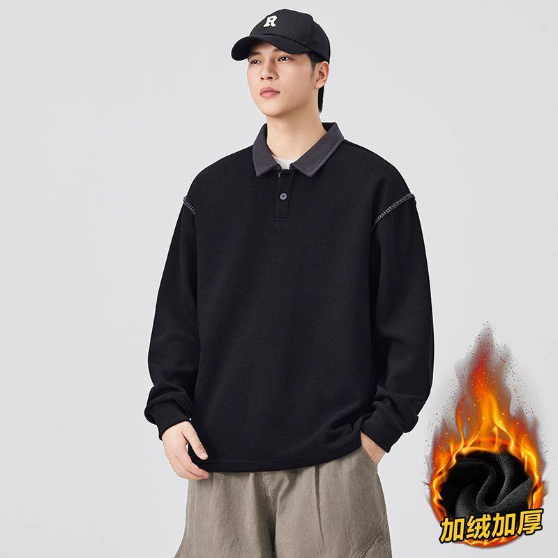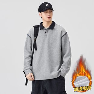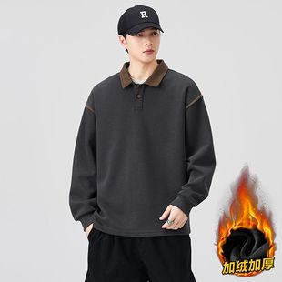 t恤上衣 2025加绒加厚情侣宽松纯色长袖 骆驼男装 圆领卫衣男秋冬季