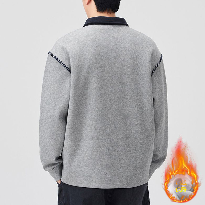 宽松休闲上衣MS 新款 班尼路SK翻领卫衣男假两件套头打底衫 2025秋季