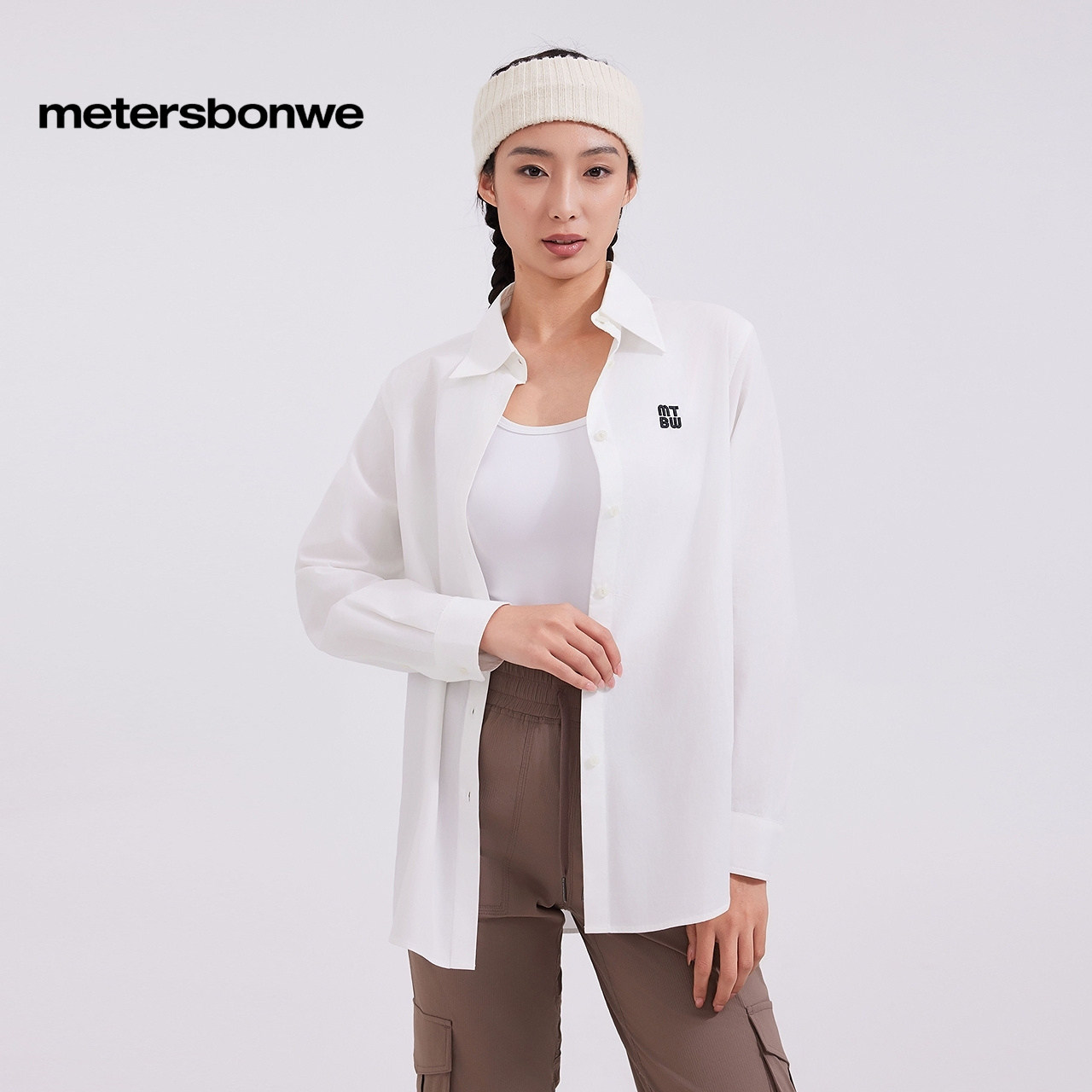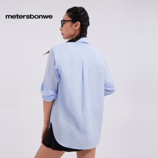 美特斯邦威外套女25秋新舒适撞色刺绣点缀宽松简约衬衫 商场同款