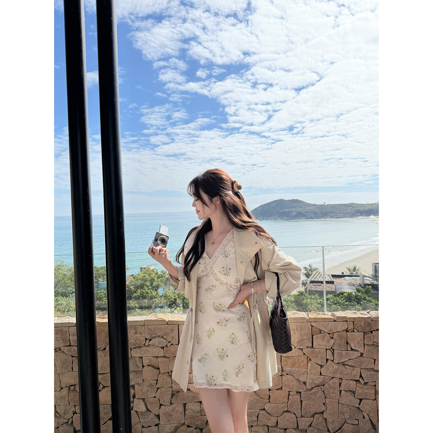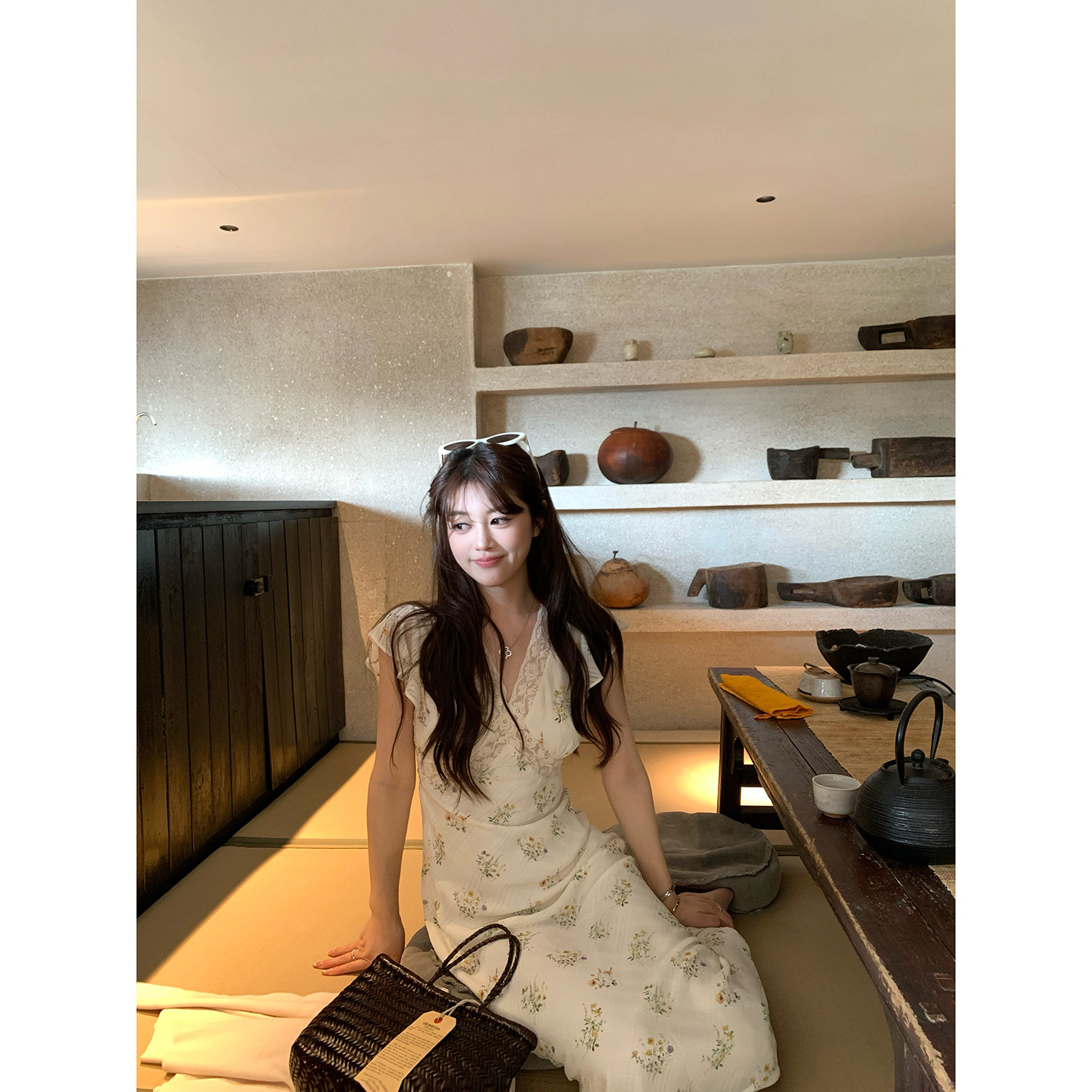 本花卉蕾丝小飞袖 早春双版 首尔之春 收腰碎花度假连衣裙新 AHY