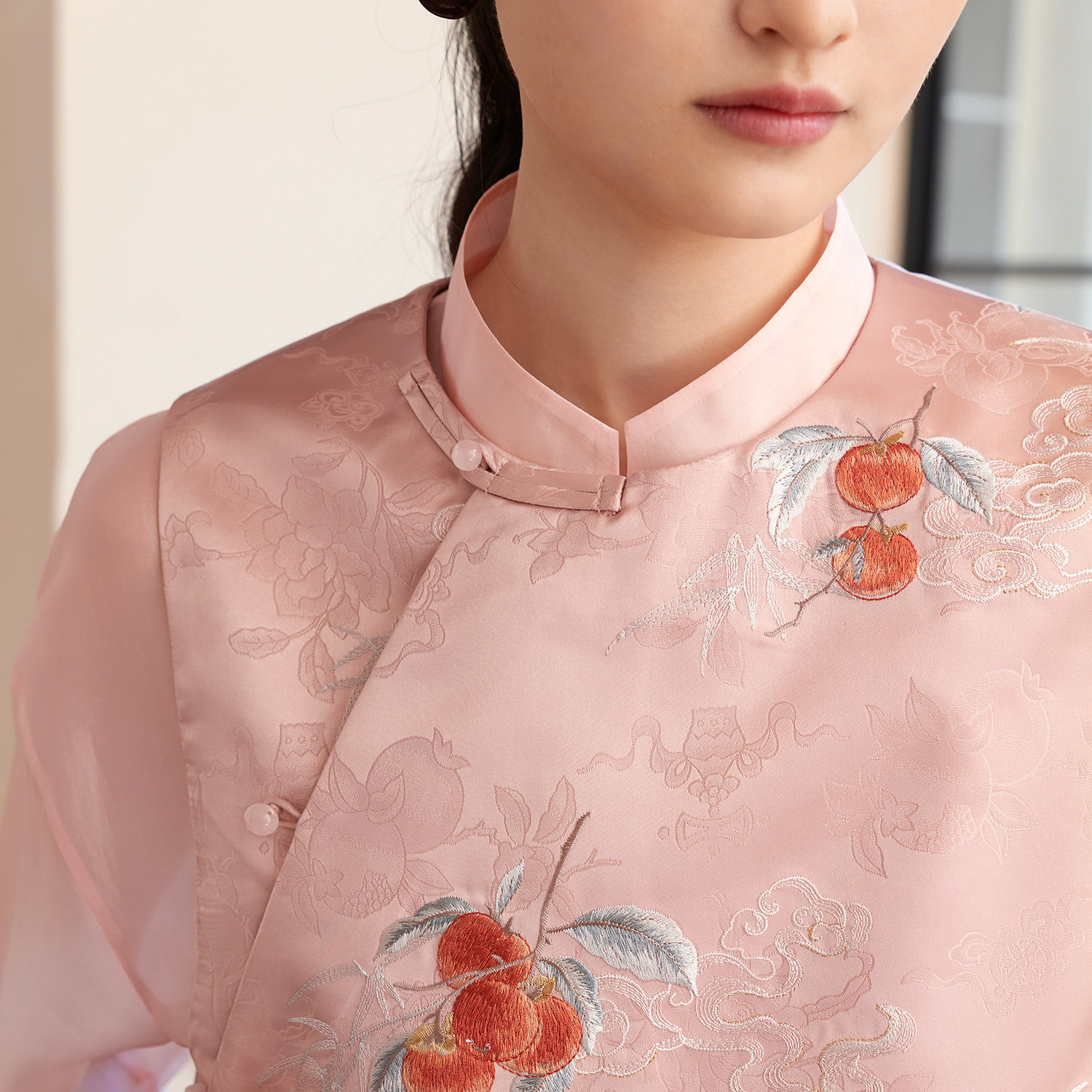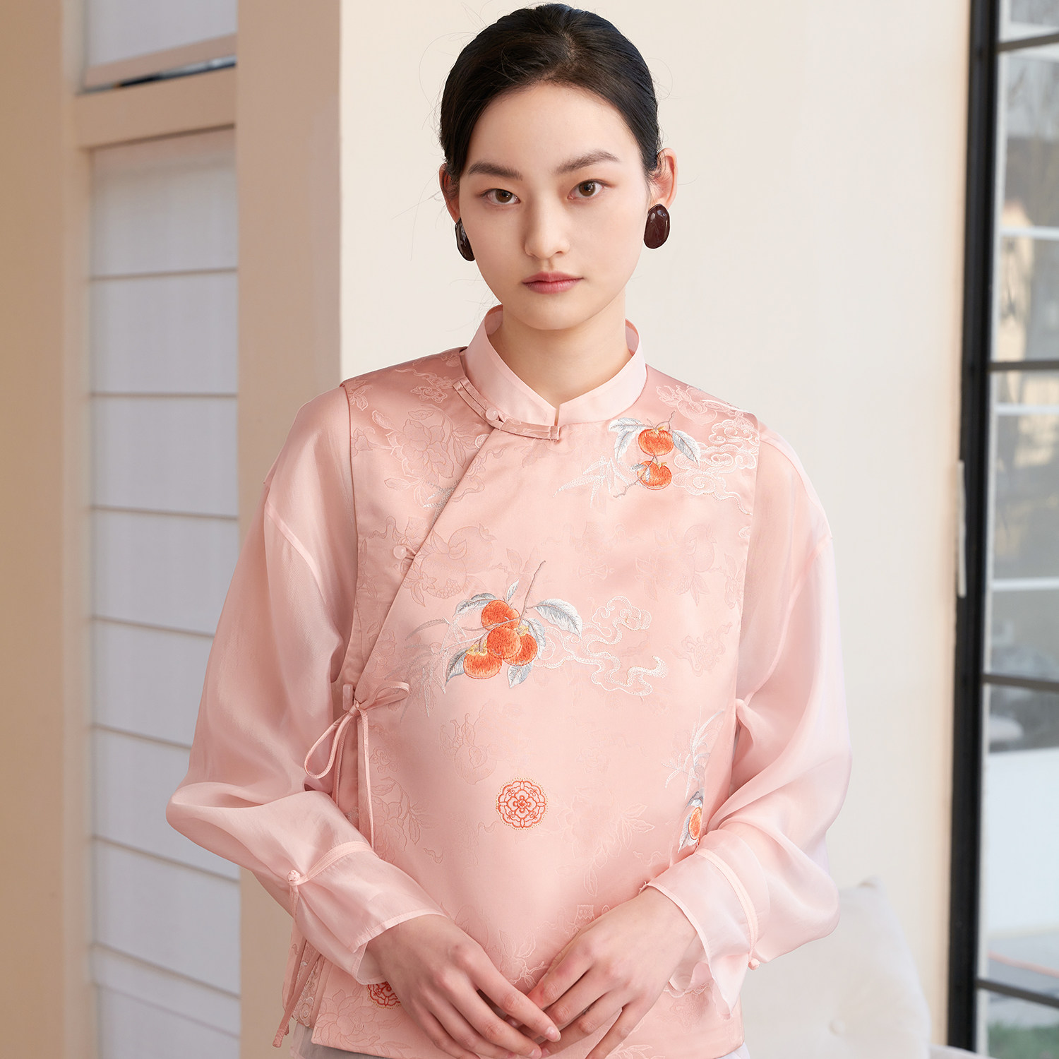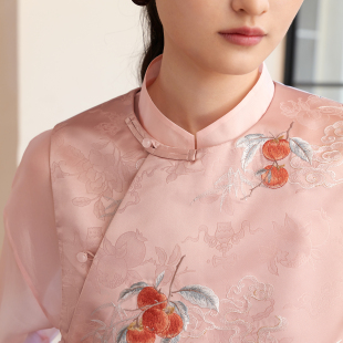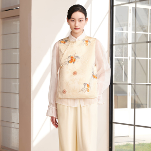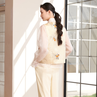 提花缎面刺绣马甲女新中式 春新款 玉石珠盘扣坎肩 悦锦 如意连云