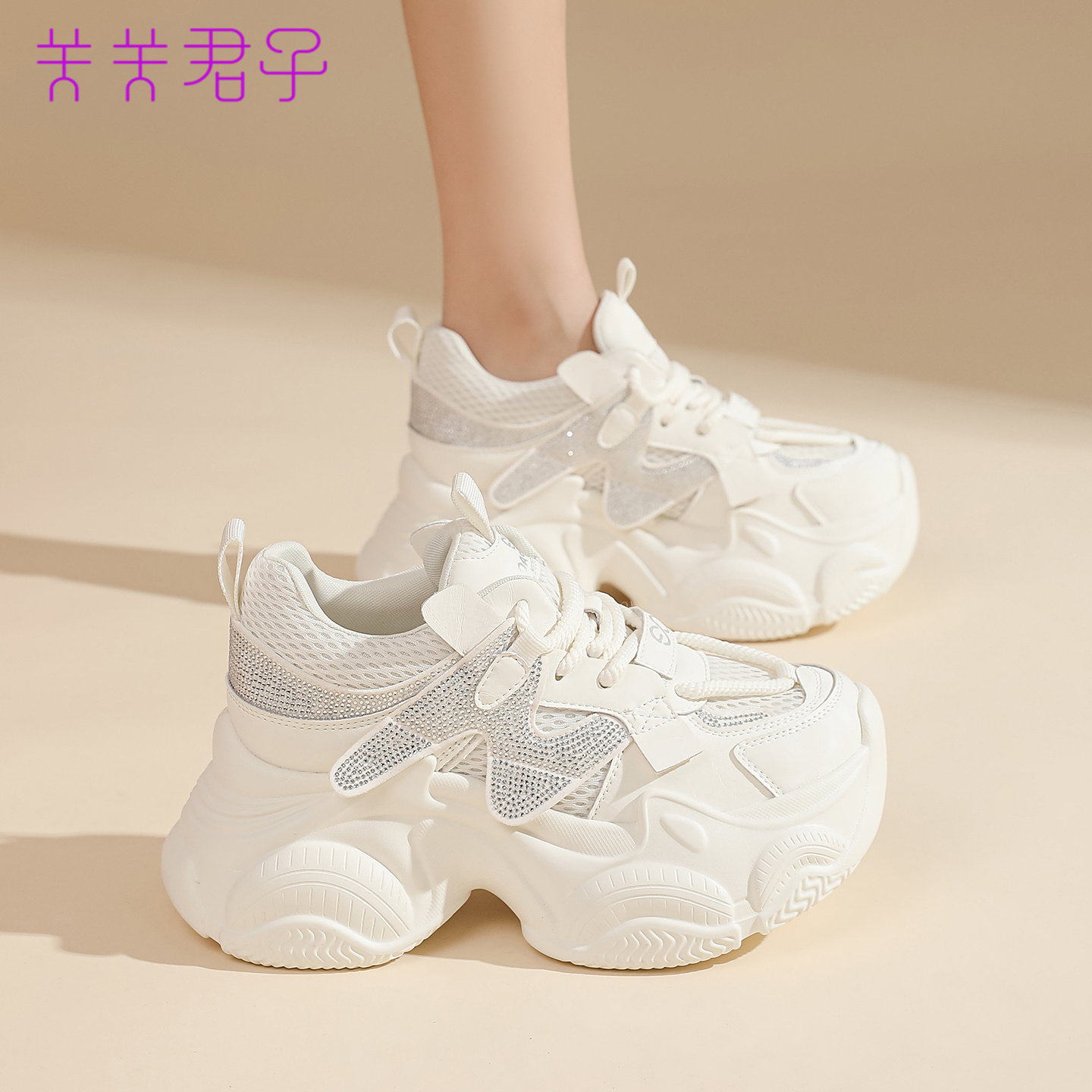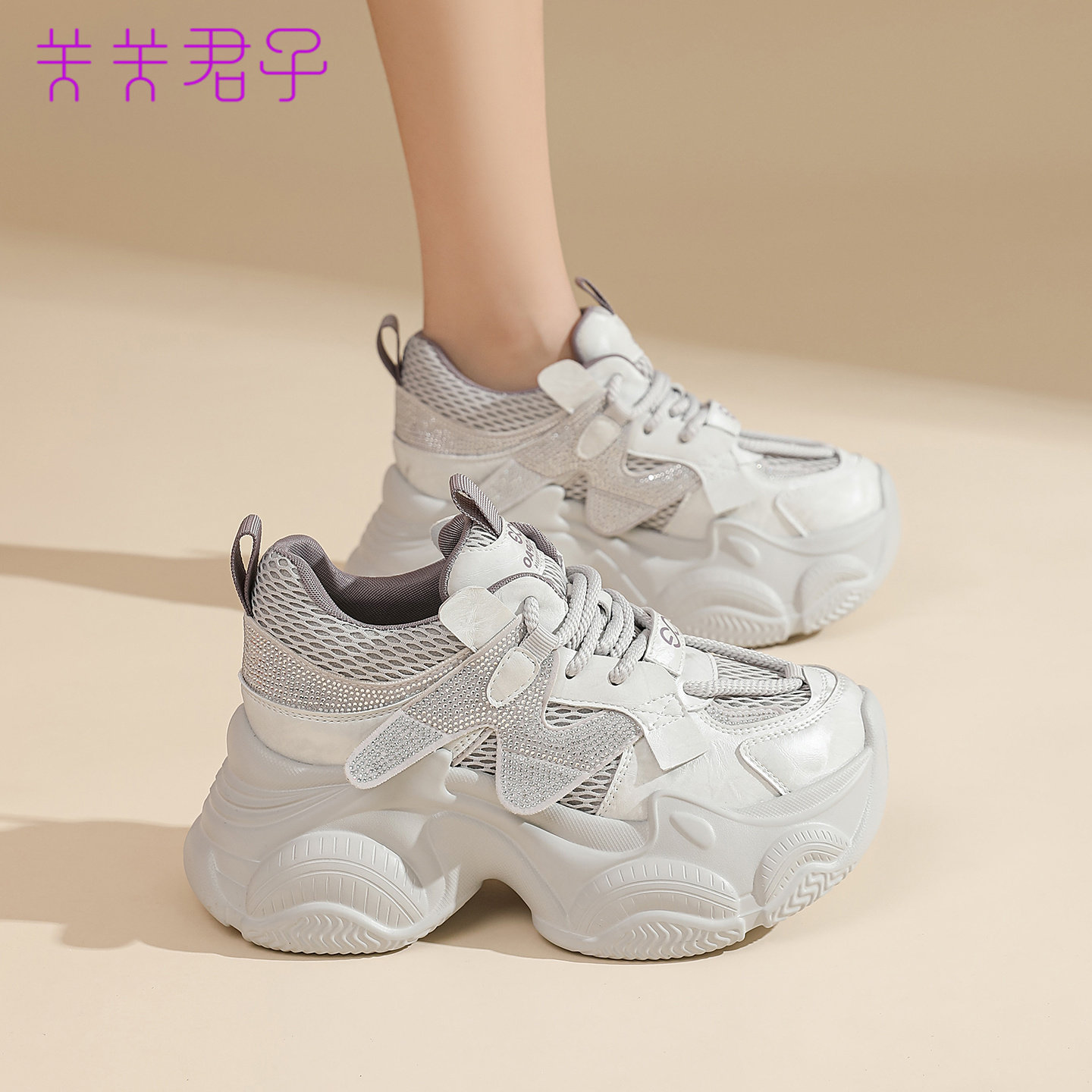 网面透气厚底内增高8.5CM学生运动休闲鞋 小个子老爹鞋 女2026夏季