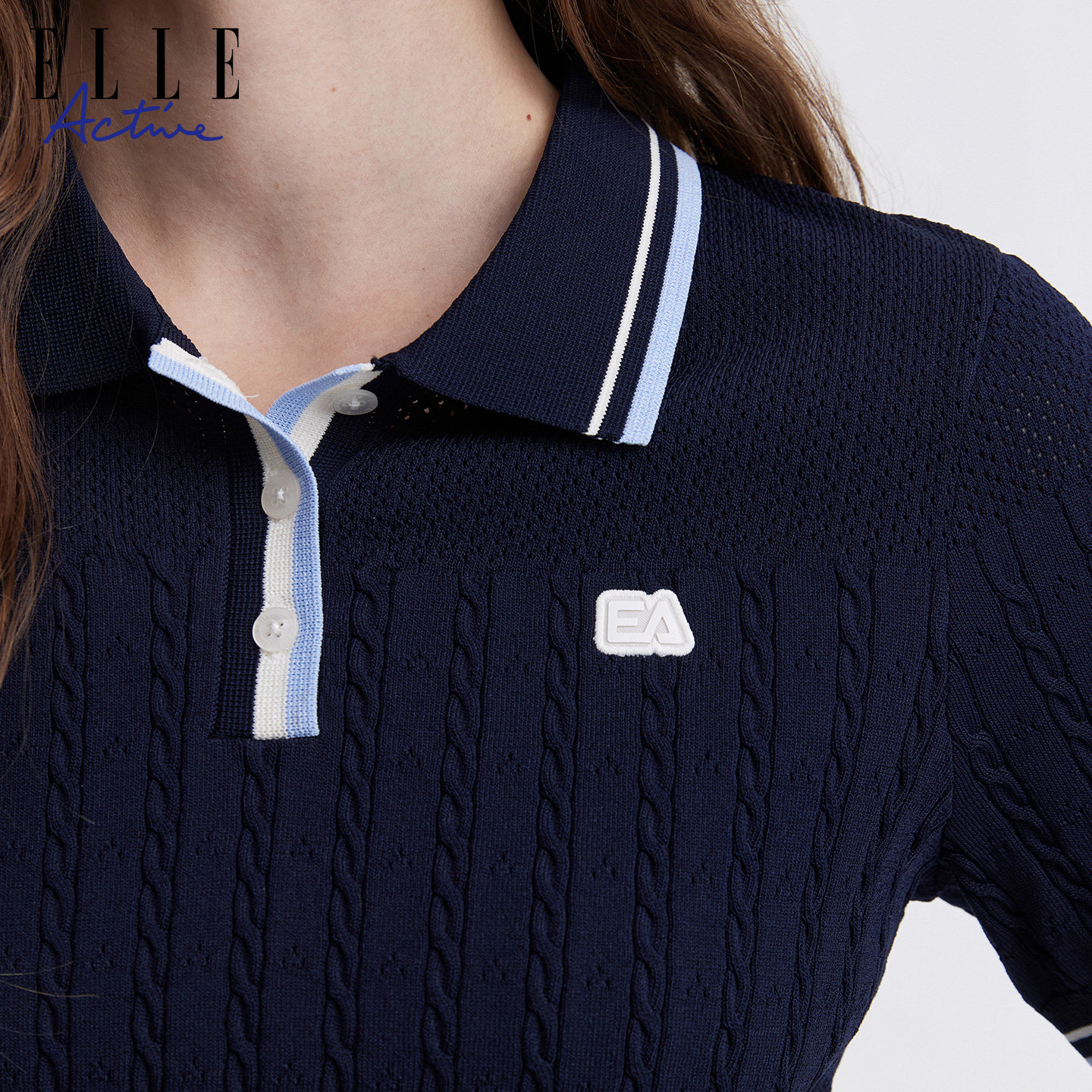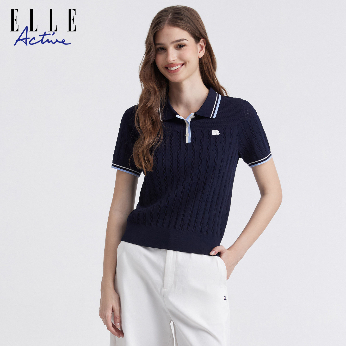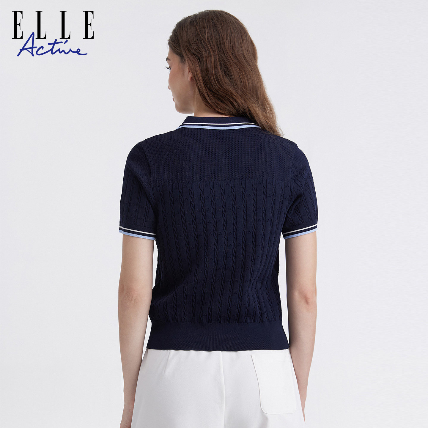 春夏时尚 针织衫 翻领上衣质感绞花显瘦T恤 Active高智老钱短袖 ELLE